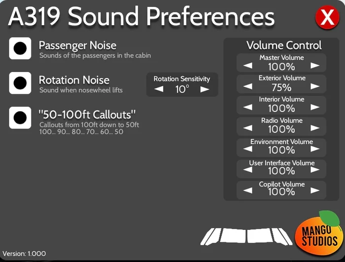 Increase the realism of your ToLiss Airbus A319 family, with our soundpack! This soundpack being the most detailed one to ever be developed by Mango Studios Sounds is guaranteed to increase the realism and true to life feel inside the cockpit!