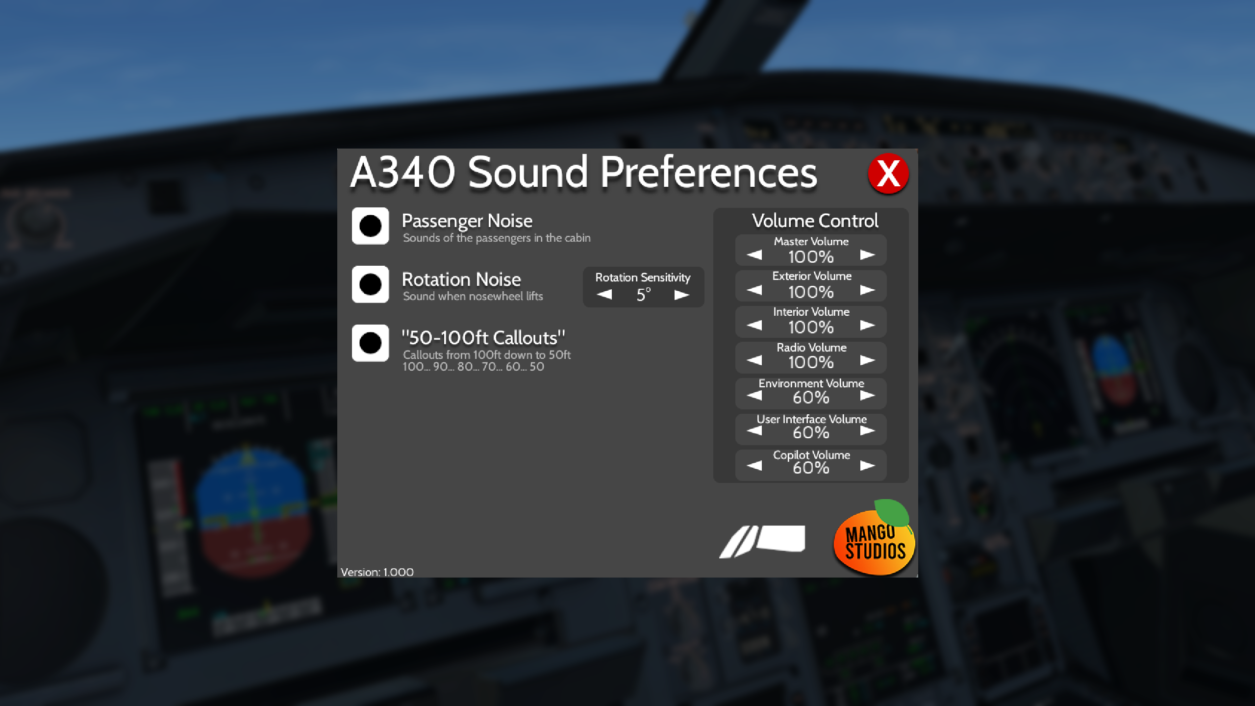 Mango Studios has taken recorded clips off a real plane and implemented them into an immersive 3d sound environment, complete with real cockpit system sounds, g-force effects, engine sounds, and realistic cabin sound space.