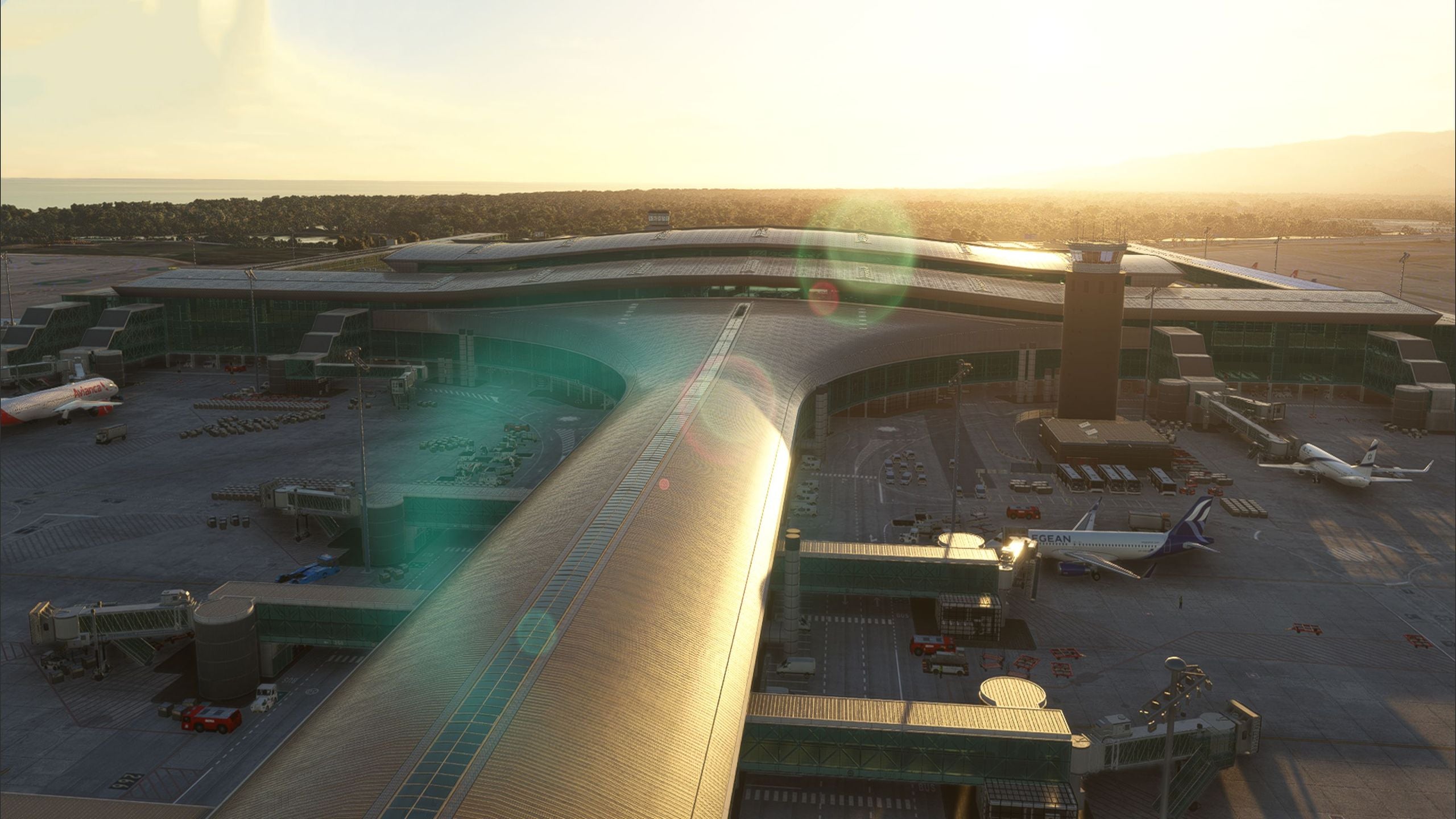 - Handcrafted 3D models of buildings, jetways, and airport facilities