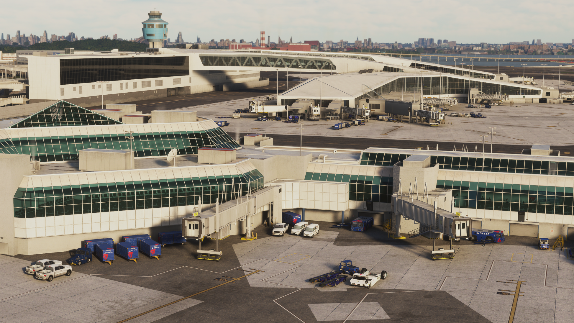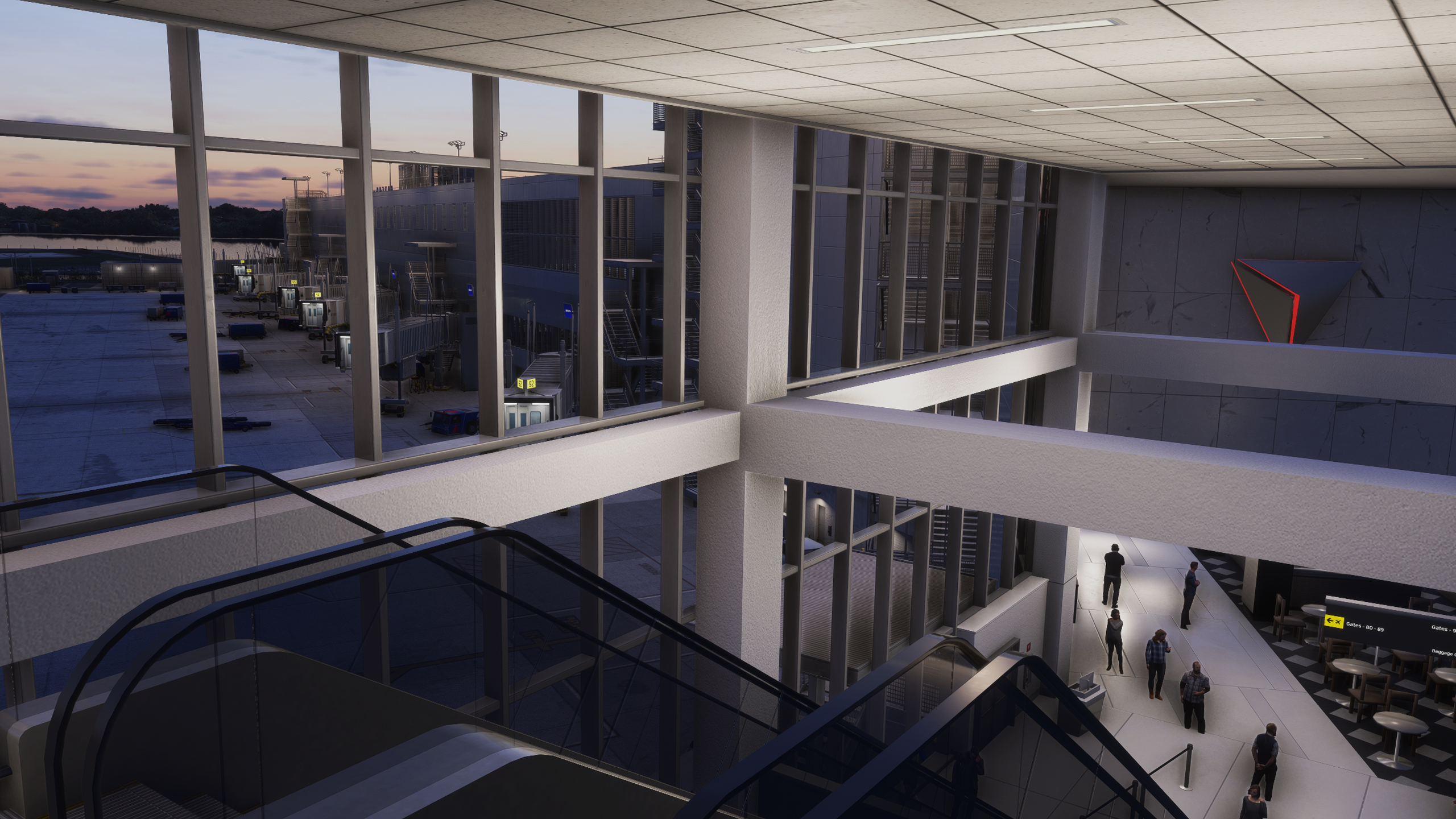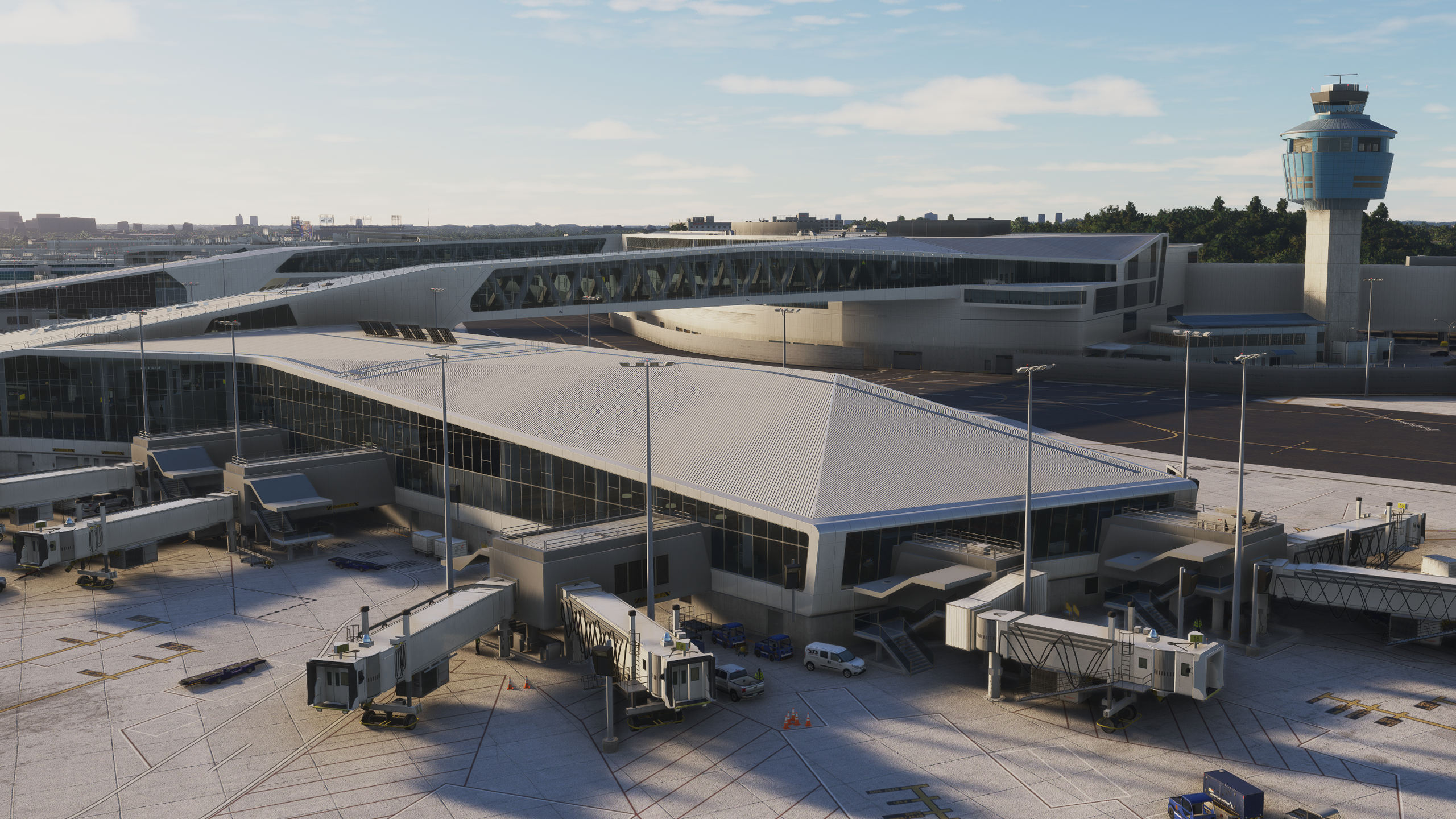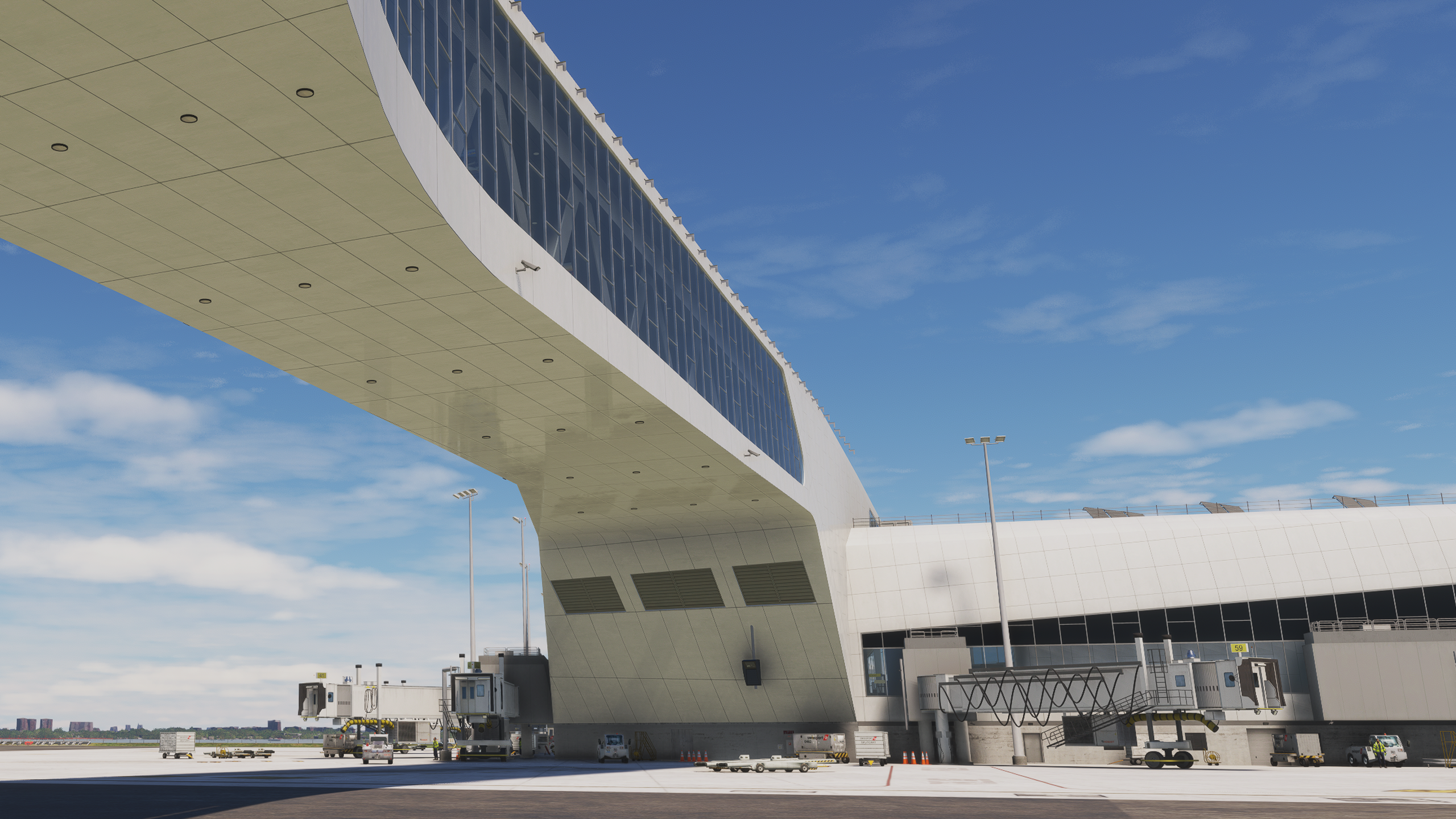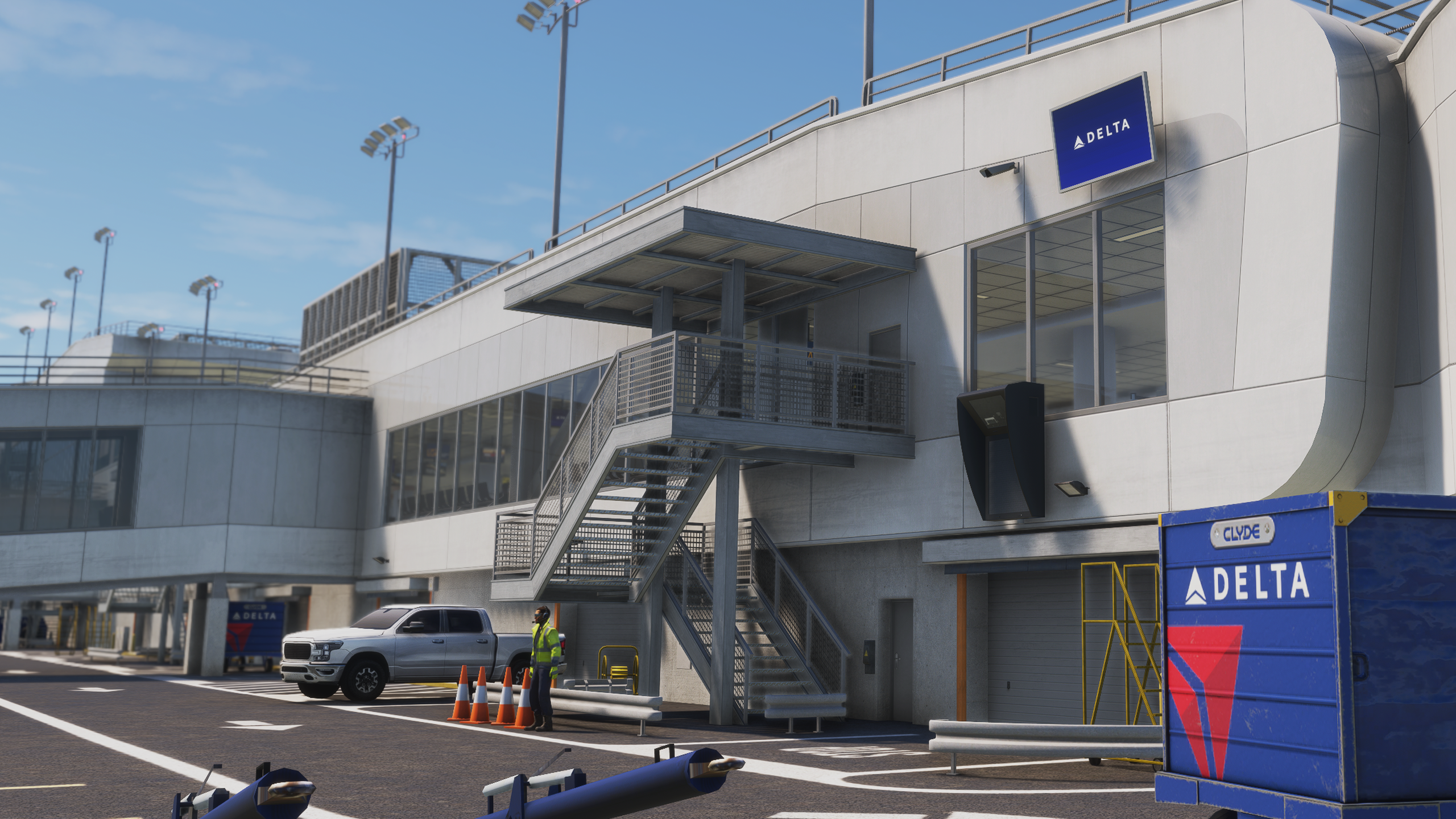 - Handcrafted 3D models of buildings, jetways, and various airport facilities