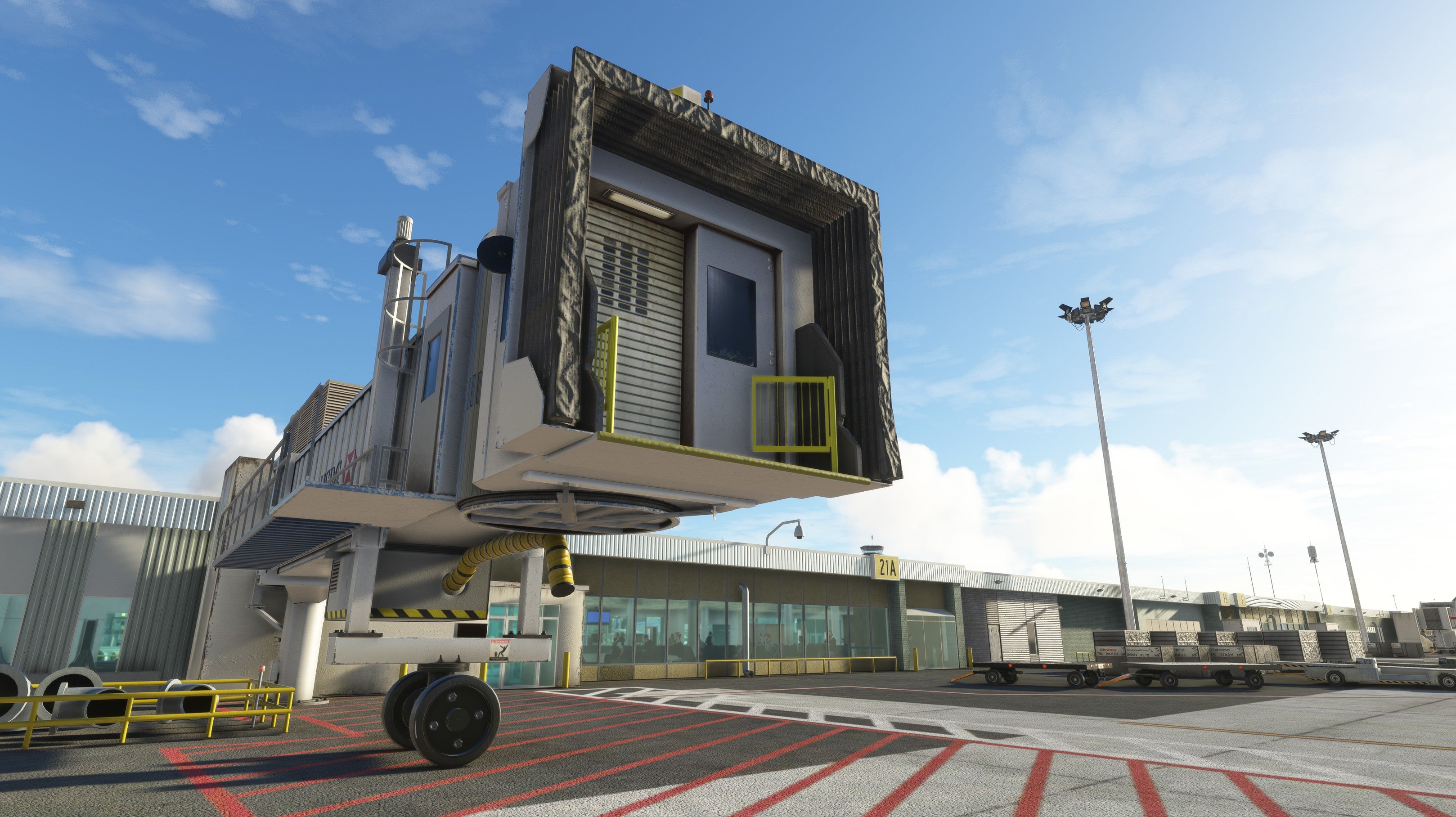 - Handcrafted 3D models of buildings, jetways, and airport facilities
