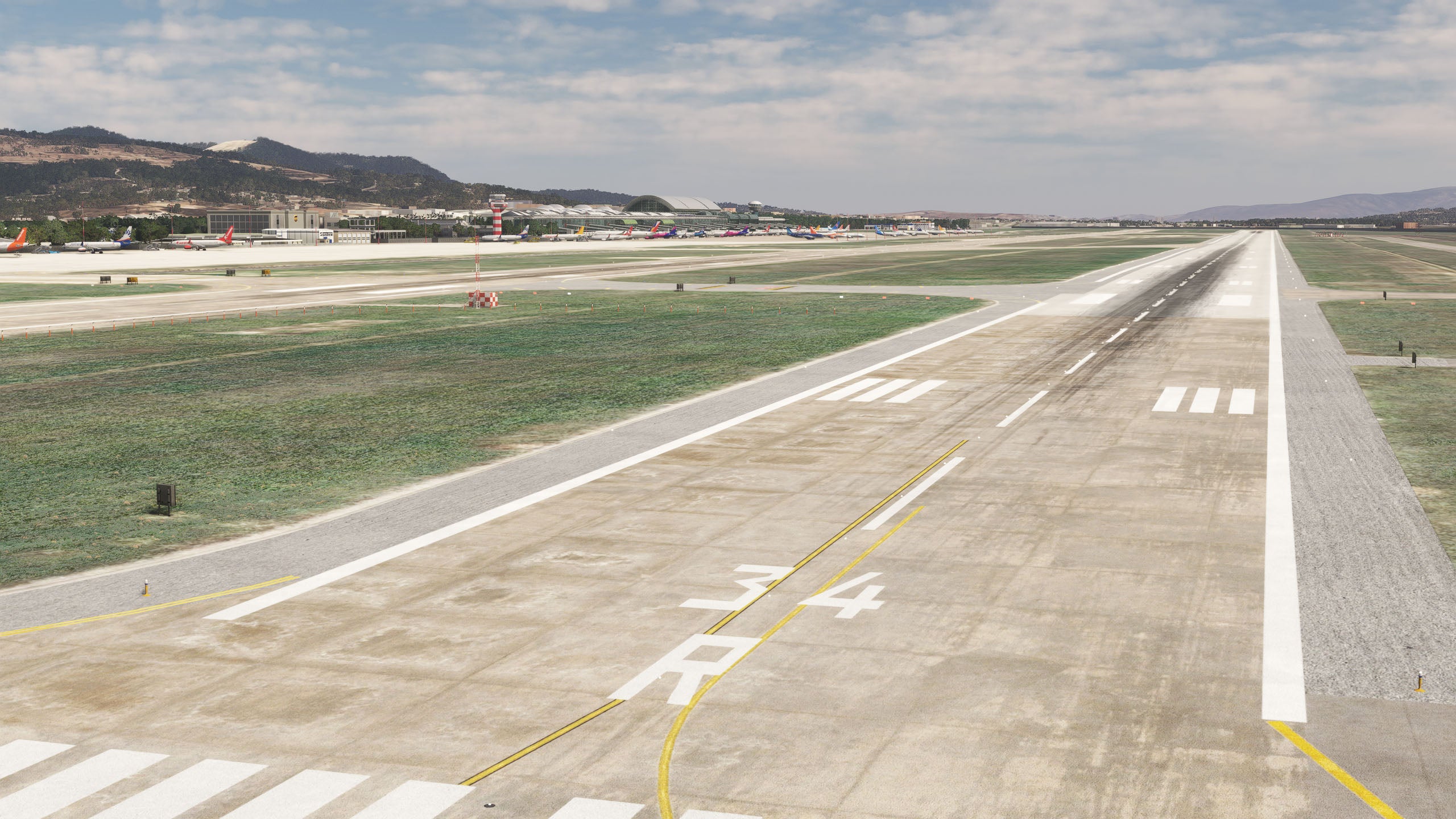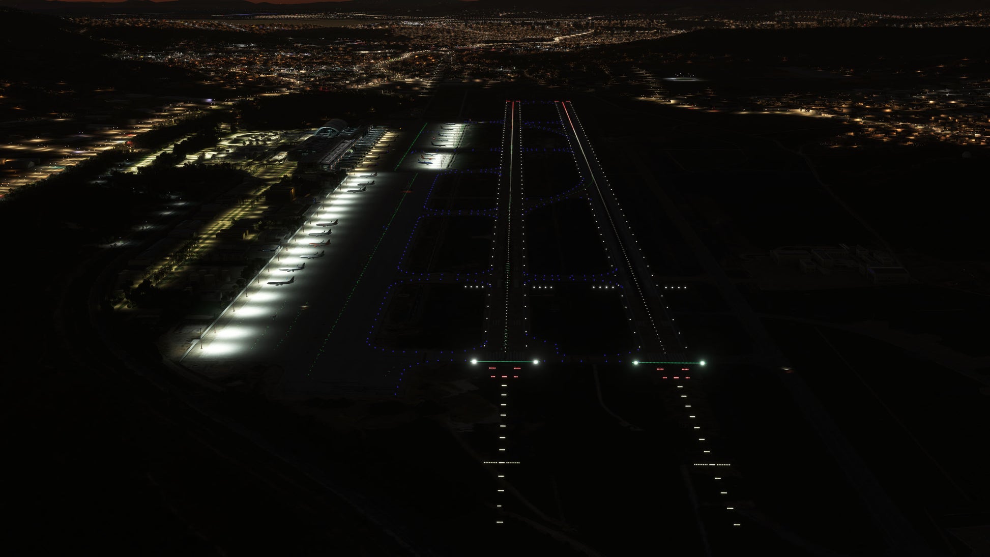 - Accurate ground layout with custom taxiways, apron markings, and runway slope