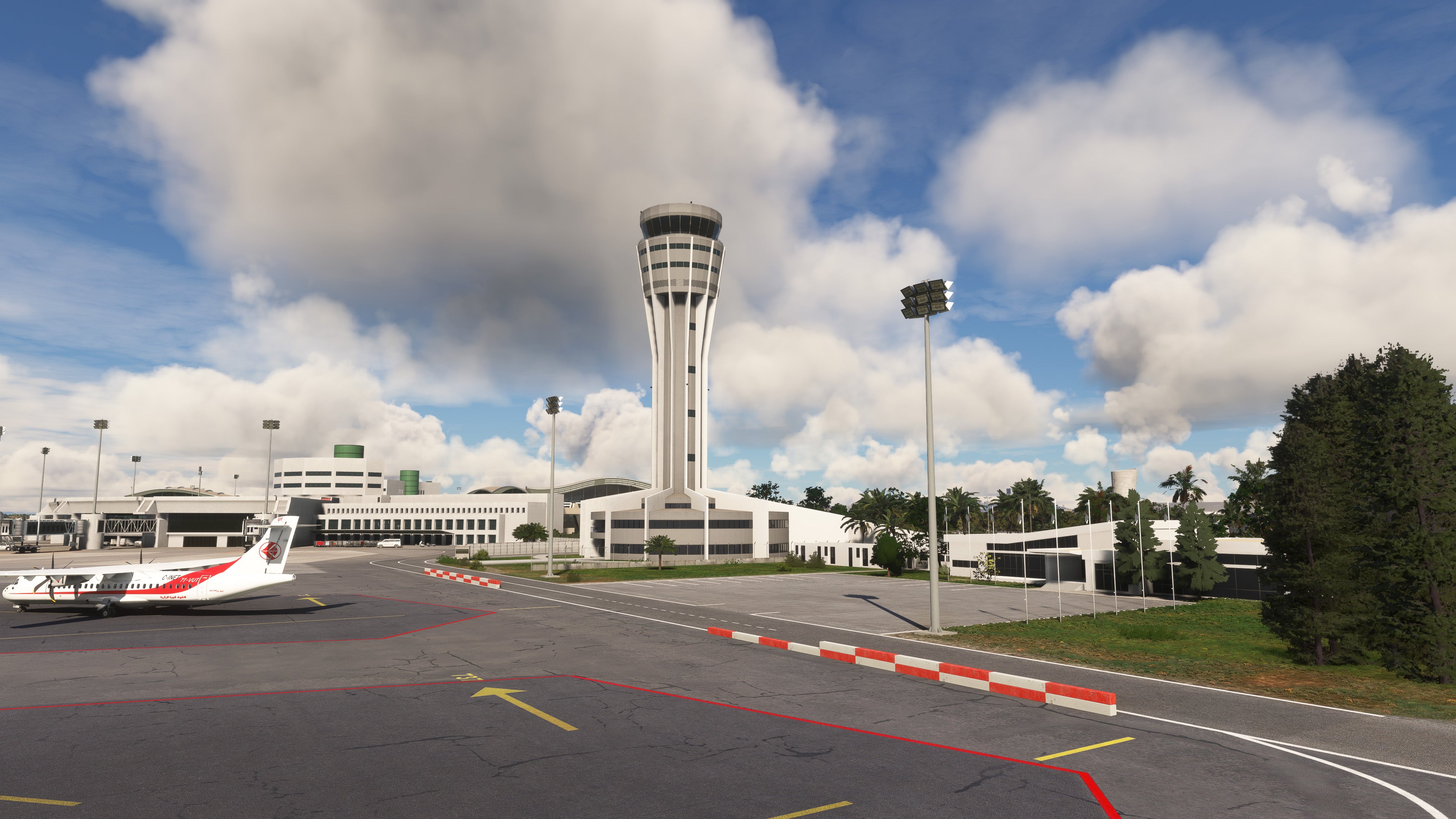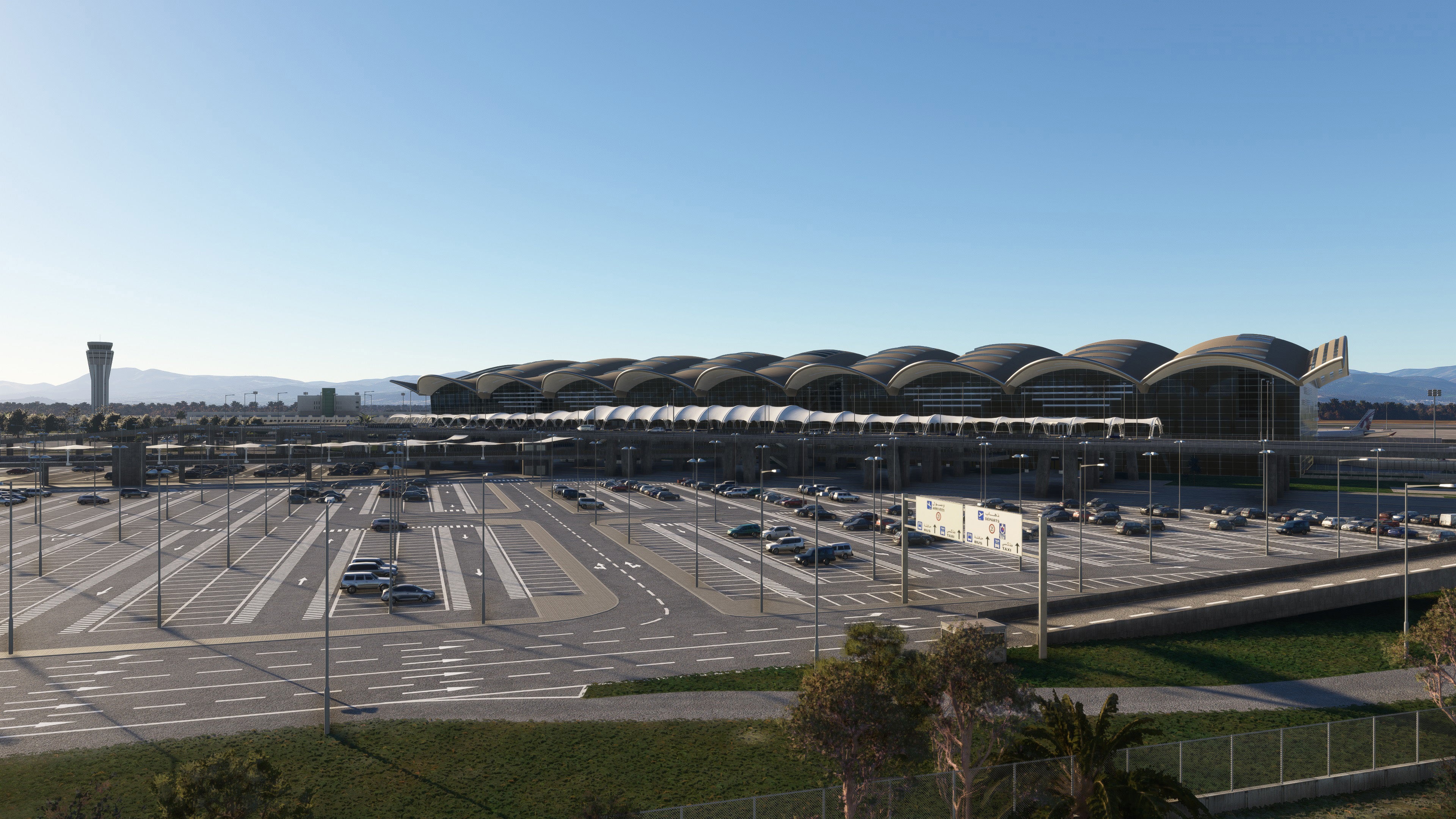 NetDesign has painstakingly recreated the entire airport with upwards of 40 custom models including the four terminals, various buildings, vehicles, aircraft and objects. Extensive rework of auto-generated areas behind the airport has been done to blend it with the main terminal areas. The accompanying DAAG Scenery pack features key landmarks such as Maqam Echahid (Martyrs' Memorial) and Nelson Mandela Stadium which is flown over during the runway 09 approach. The crown jewel is a striking recreating of Djamaa el Djazaïr (the Great Mosque of Algiers), the billion-Euro megaproject which was both controversial for its cost and award-winning for its beautiful architecture. It features a 265 m (869 ft) tall minaret making it the tallest building in Africa and the tallest minaret in the world. Both the mosque and stadium feature real-life helicopter pads which are available as starting positions in the simulator.