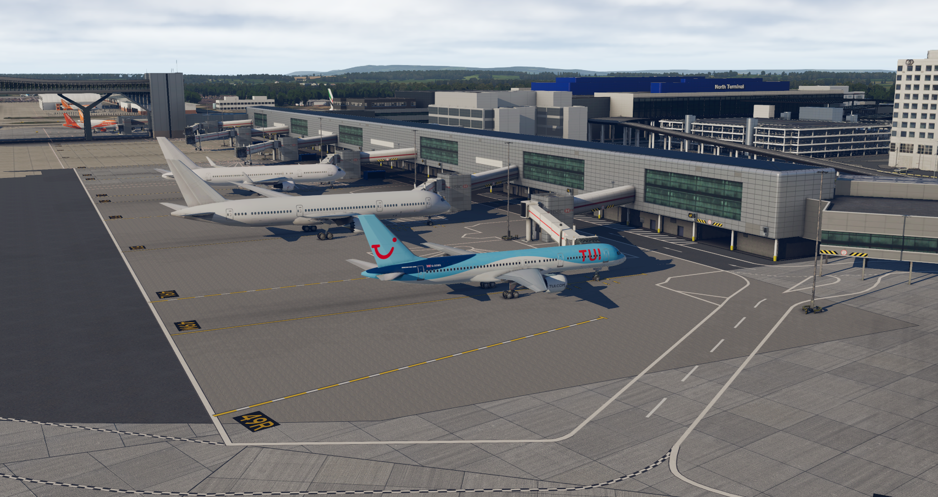 - Custom 3D terminal buildings, including complex high-quality renditions of north and south terminal