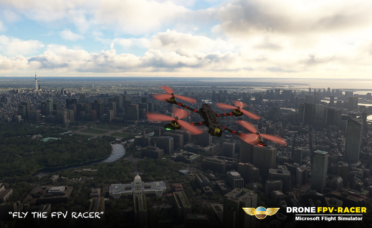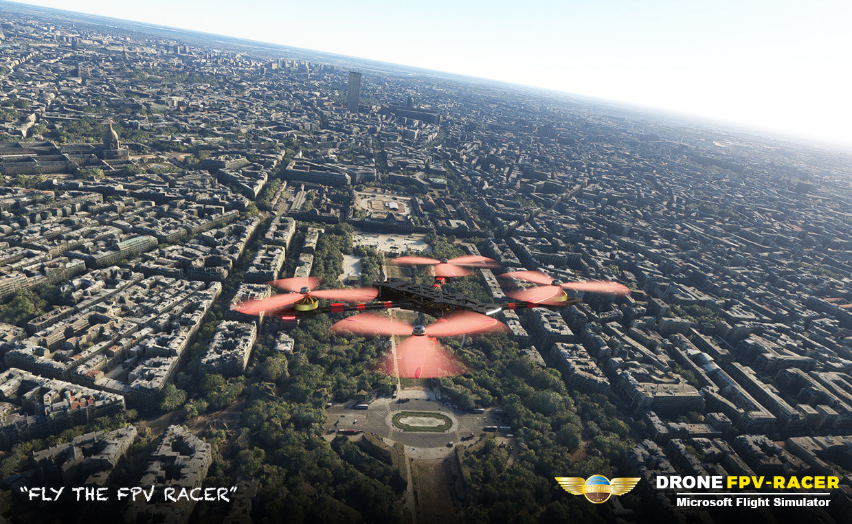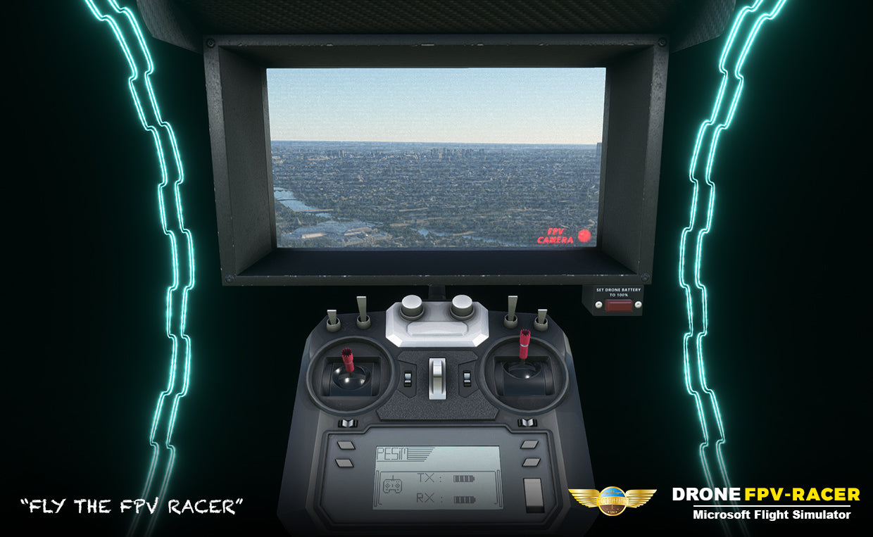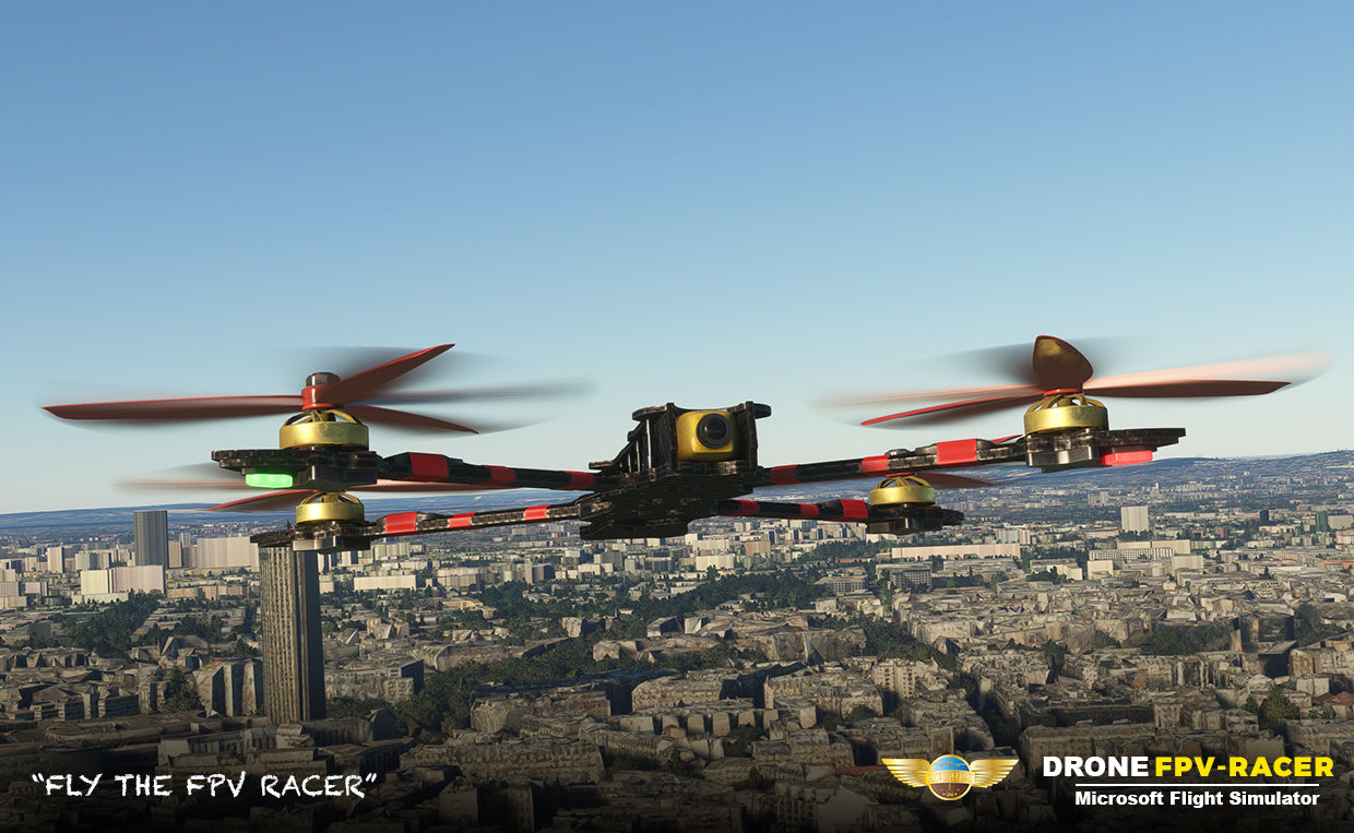 Pilot Experience Sim presents the Drone FPV racer. The flight model is custom coded and it represents a racing drone in kit form for assembly. The elements are made of carbon and include a lipo battery and the sounds come from a real drone.