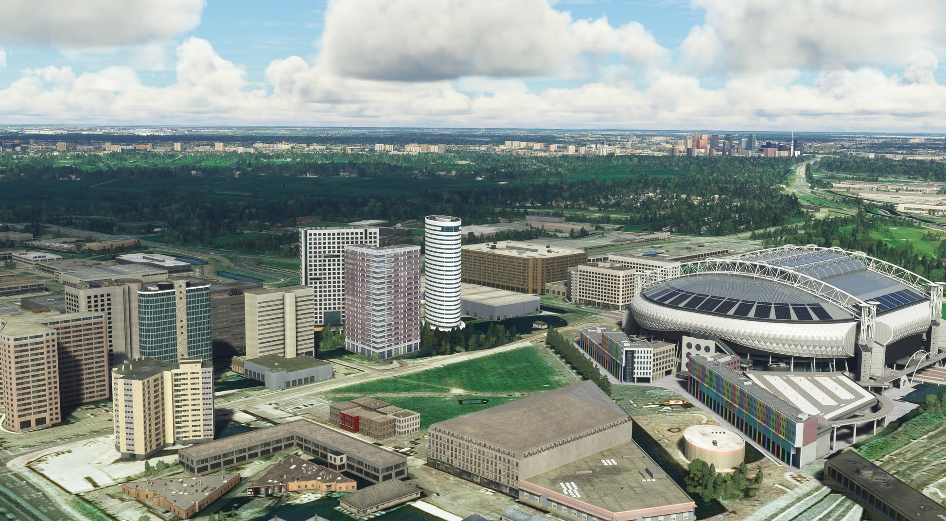 - Main city landmarks and highrise buildings added