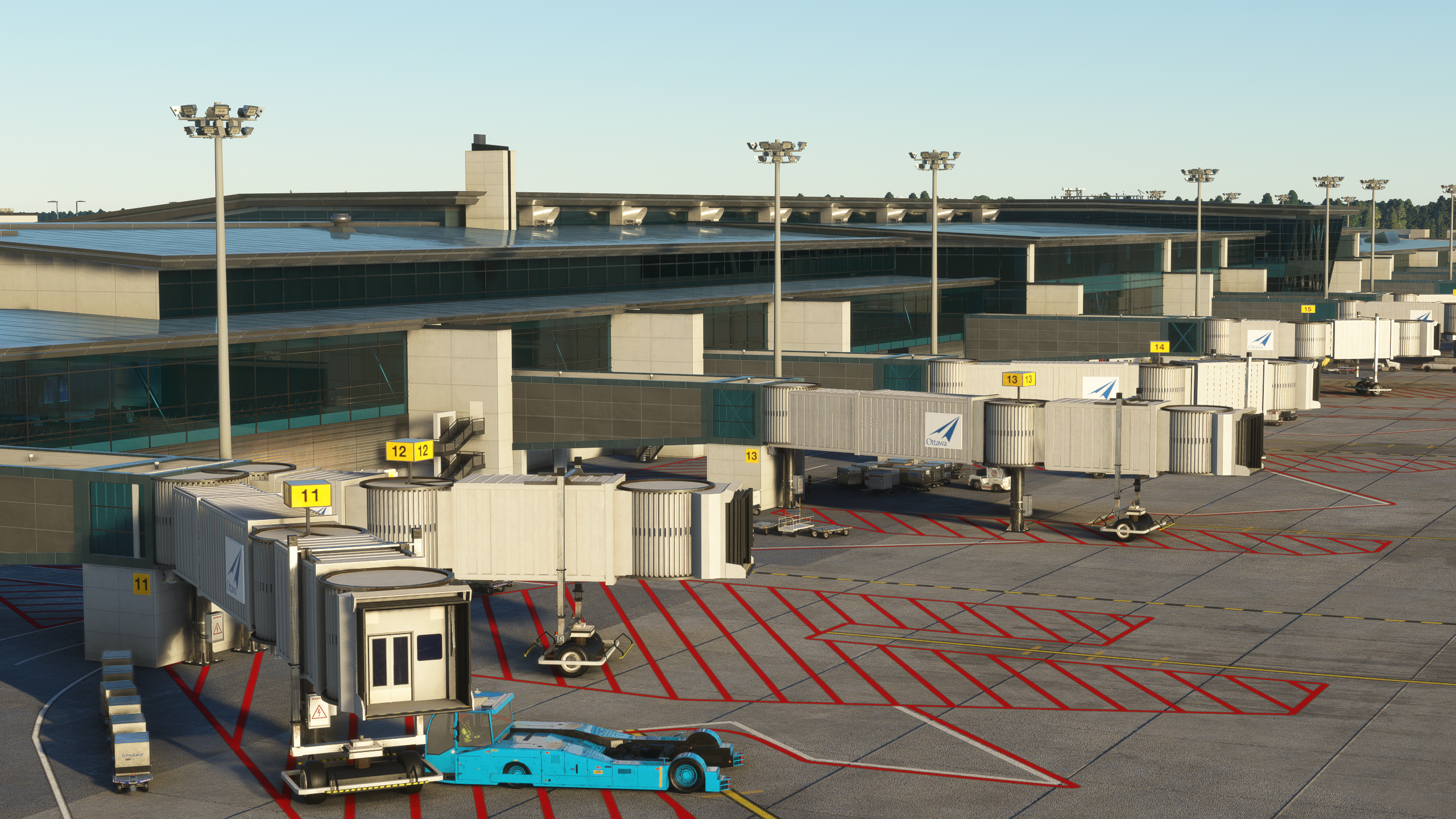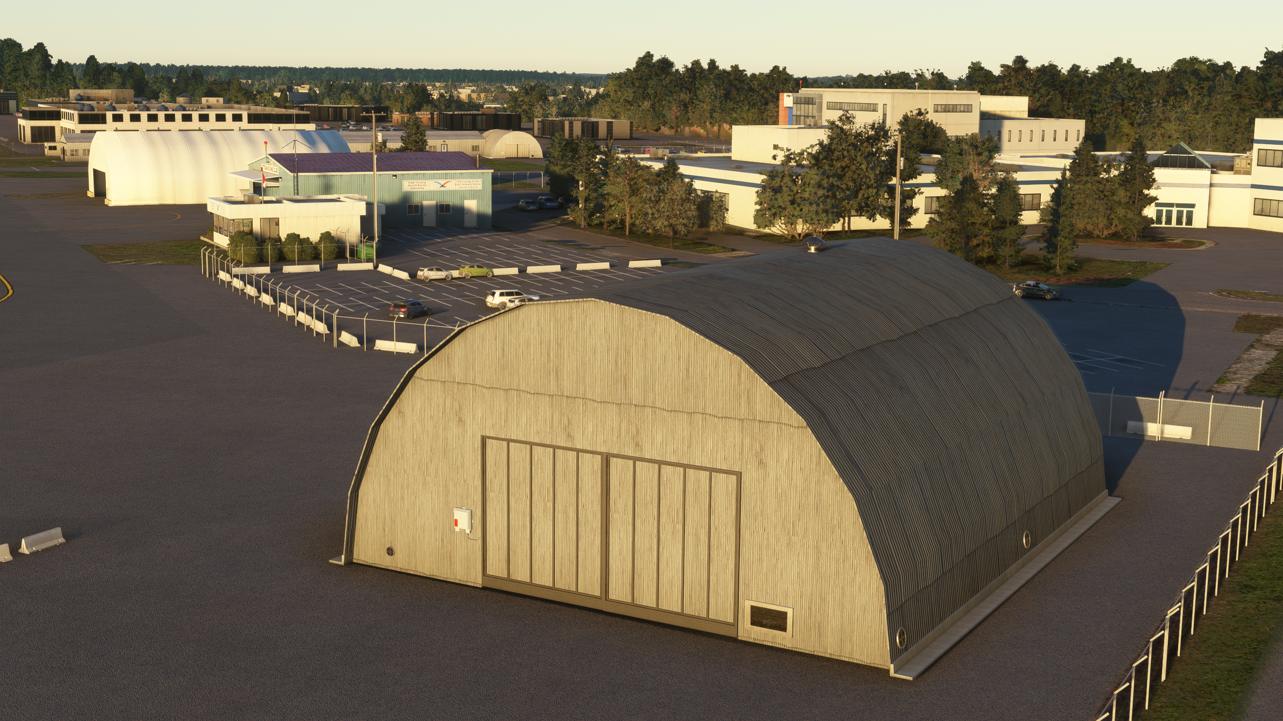 Over 40 buildings were handcrafted, along with multitude of objects and highly accurate ground markings and night lighting, to create a hyper-realistic experience for serious Flight Simulator enthusiasts. Hundreds of objects were placed throughout the airport for a realistic busy airport feel. Ottawa Flying Club buildings, hangars and area was modelled with direct feedback and media provided by OFC and its members.