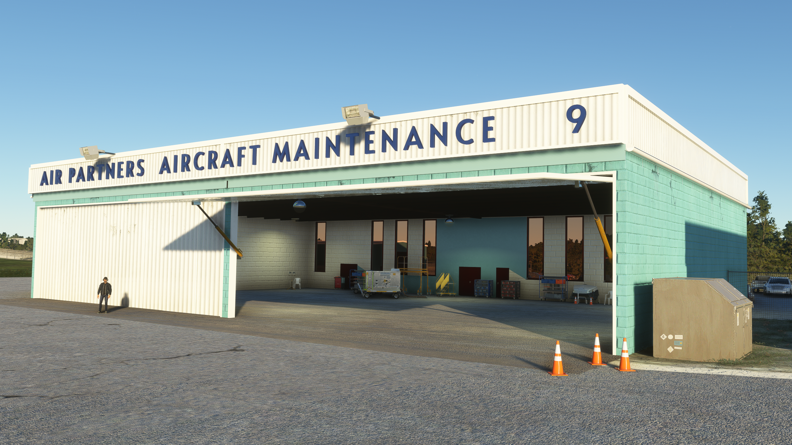 - Open hangar (S Ramp 1 spot) with interior modelling for a medium to large GA aircraft (turboprop/business jet)