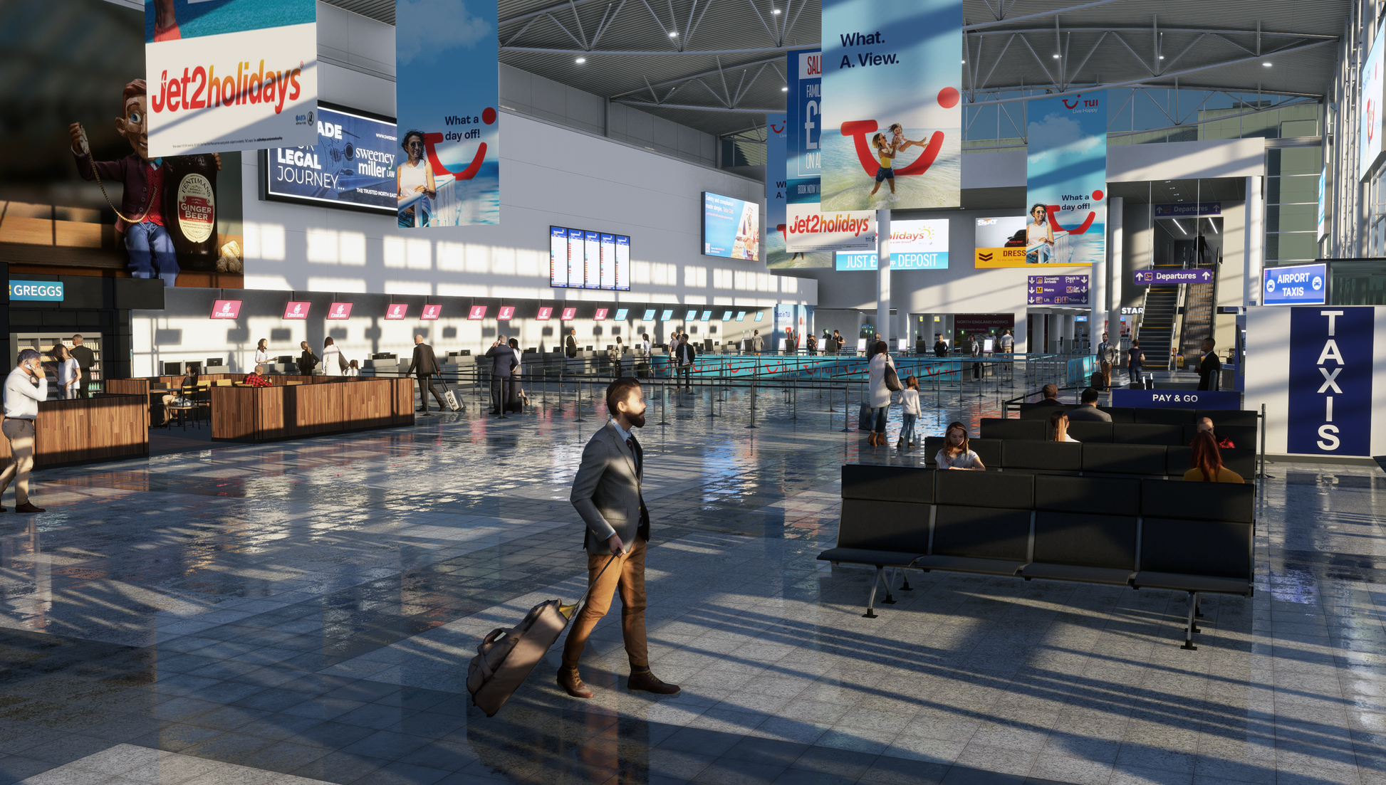 This rendition of Newcastle International Airport aims to replicate its real-world counterpart as closely as possible, featuring a fully modelled terminal interior, detailed landside areas, custom and accurate ground textures, fully custom jetways, and many additional features designed to bring the scenery to life. From long-haul flights to Dubai and the USA, to short shuttle operations to London and holiday routes across Europe, Newcastle is a fantastic addition to any simmer’s destination list.