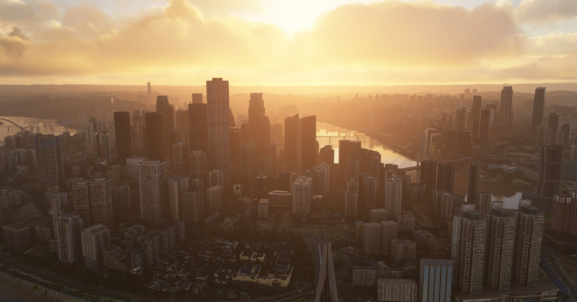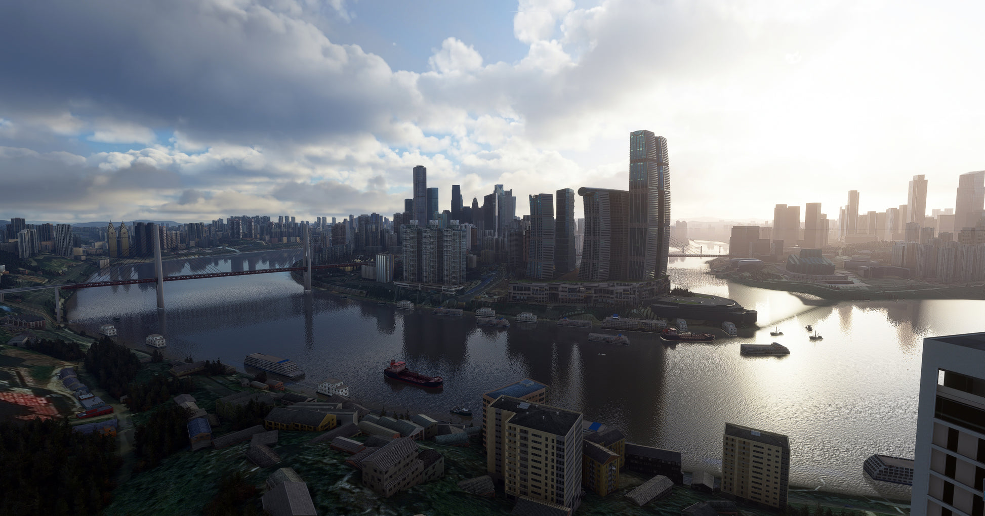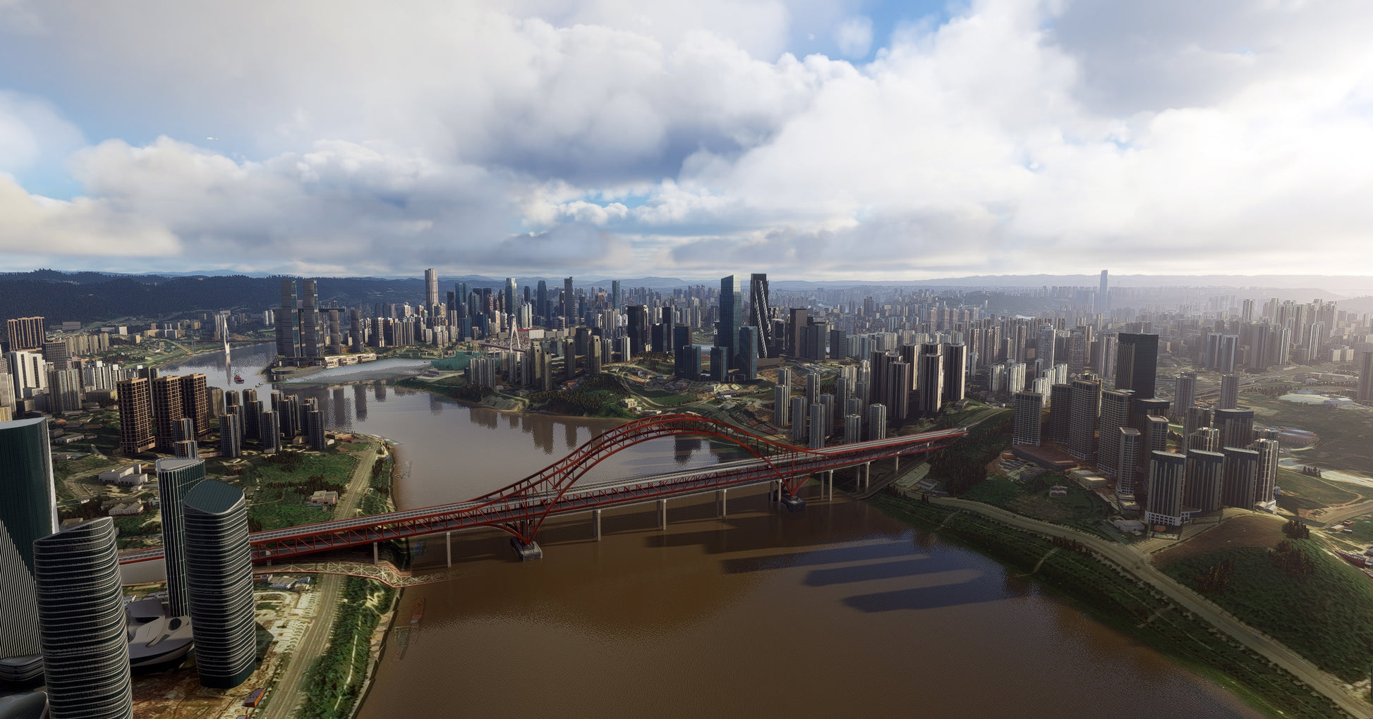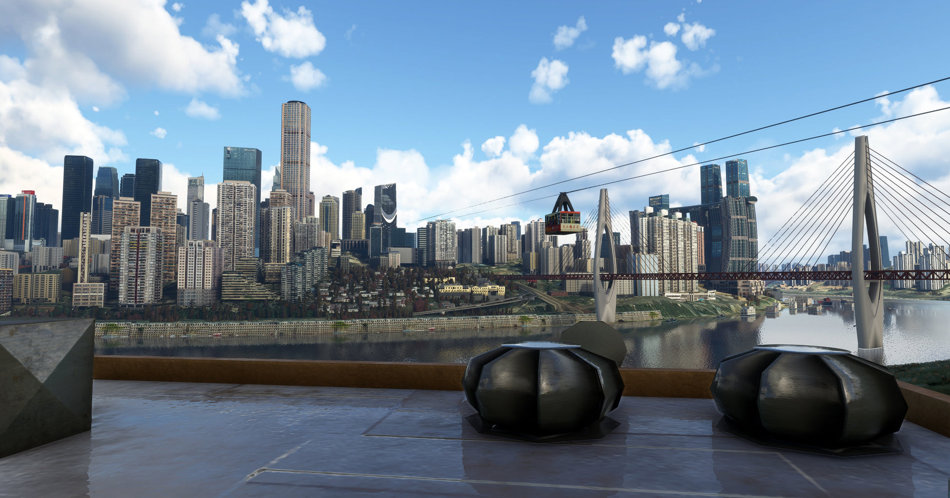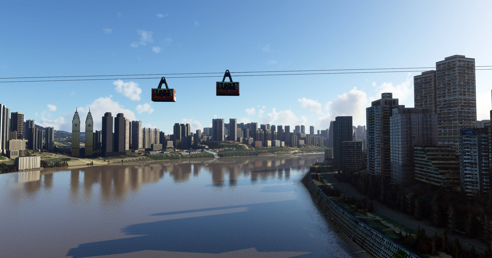 Chongqing is also the launching point for scenic boat trips down the Yangtze River through the Three Gorges Dam. This scenery focus on the Chongqing city center also includes a bonus simple design airport scenery: Jiangbei Internatinal Airport (ZUCK)