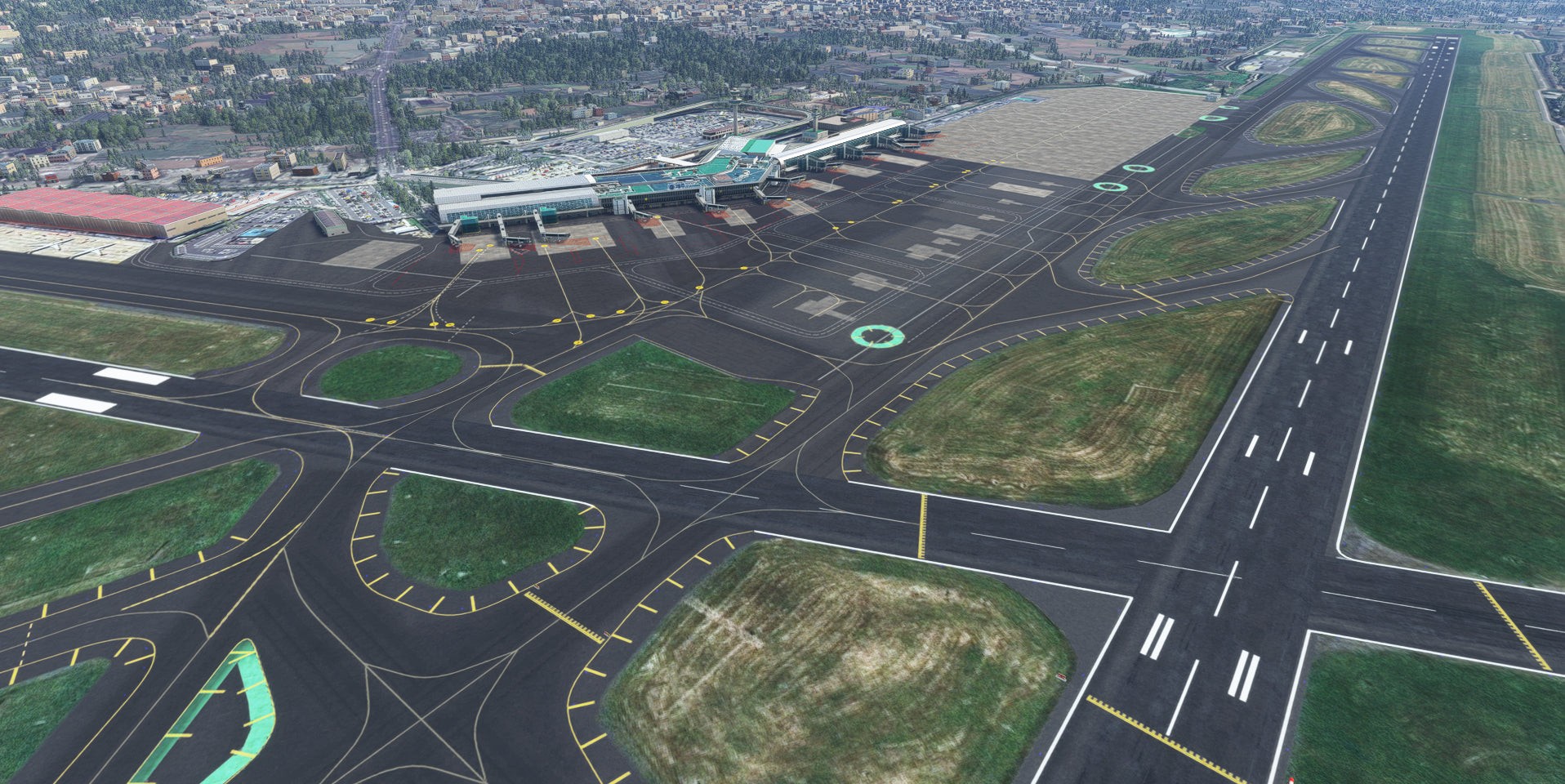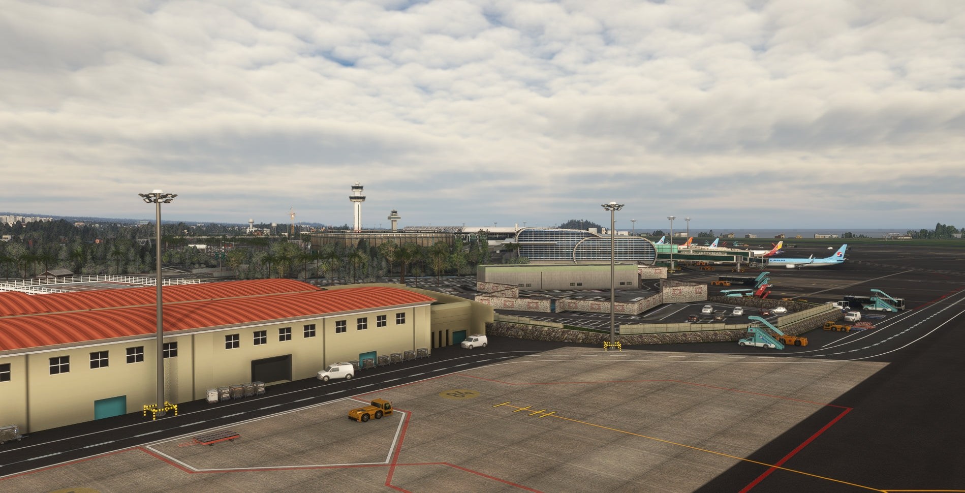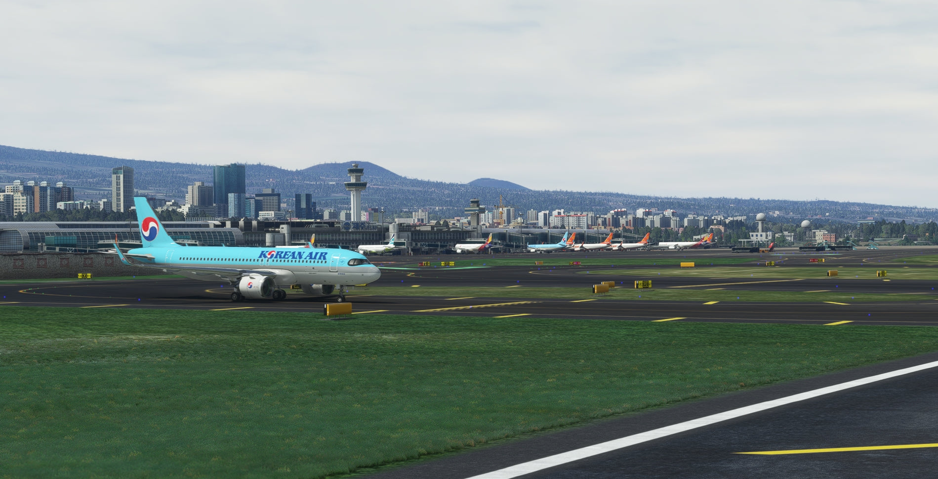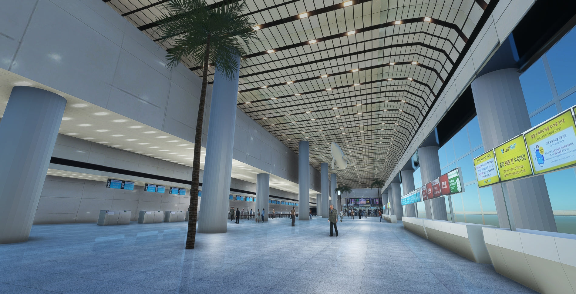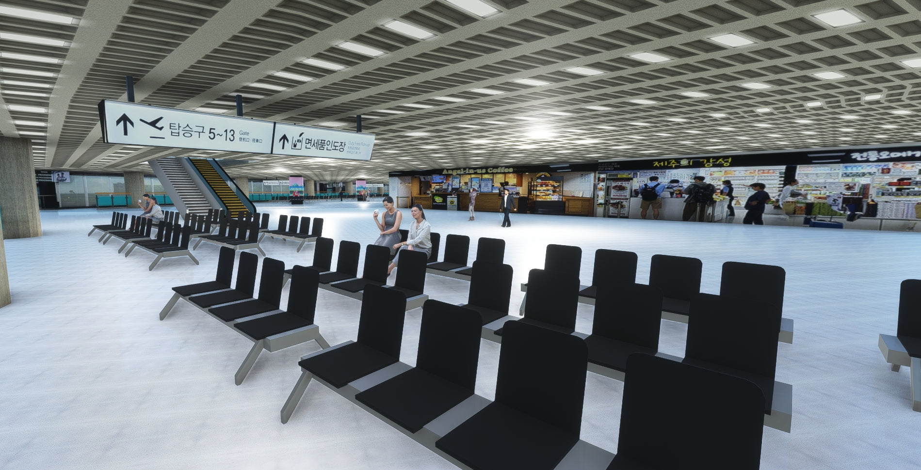 Jeju International Airport is the second largest airport in South Korea. It is located in the city of Jeju. This scenery includes detailed airport with interior and airport surroundings, as well as the city centre.