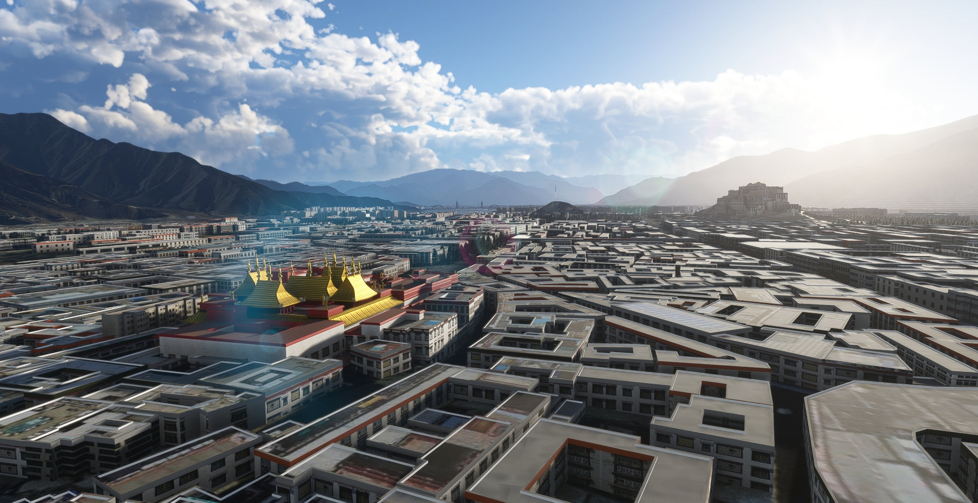 Lhasa, capital of the Tibet Autonomous Region, southwestern China. It is located at an elevation of 11,975 feet. This scenery enhanced the Lhasa Gonggar Airport as well as its city centre.