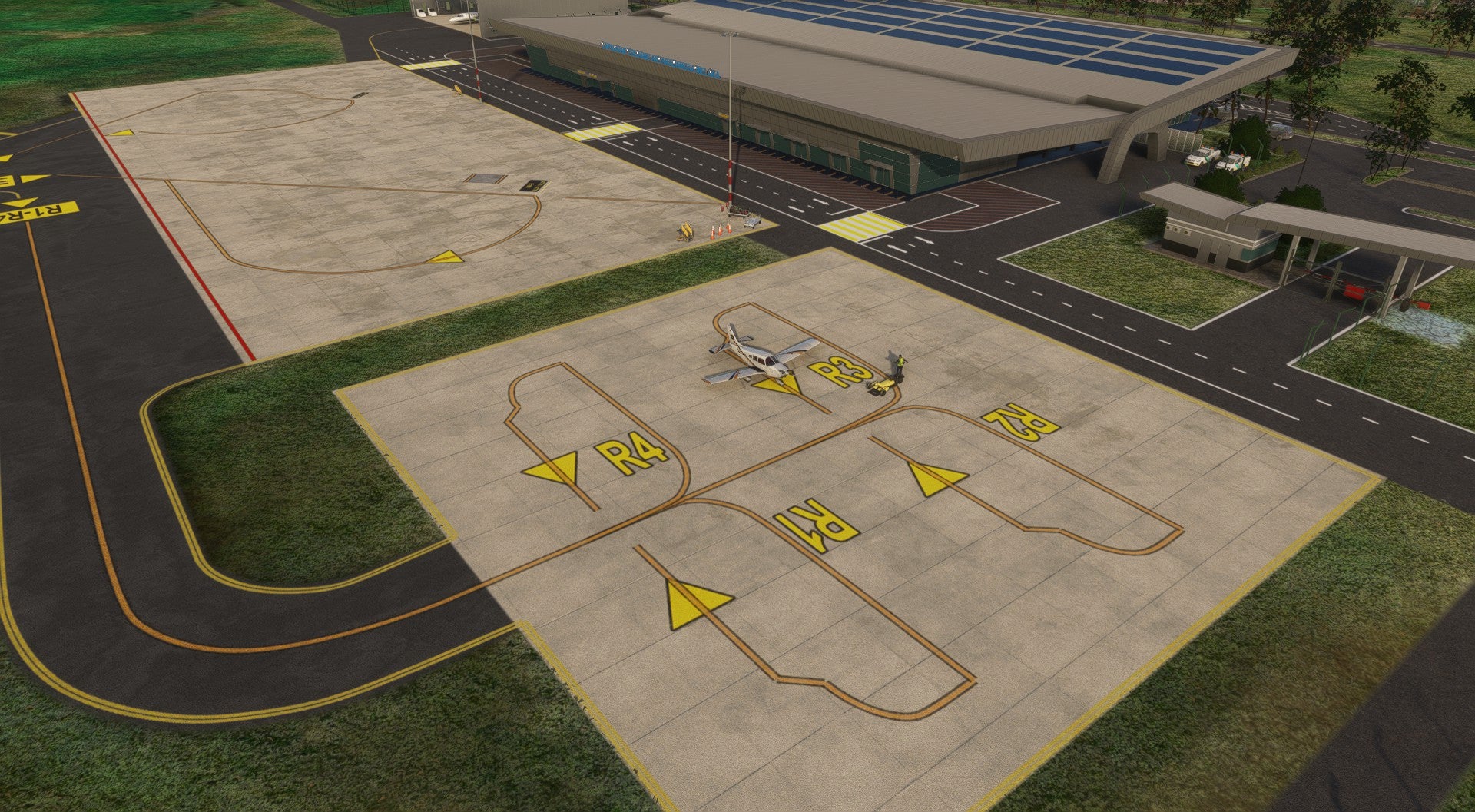 - Custom scenery objects for the Terminal, Hangar and more