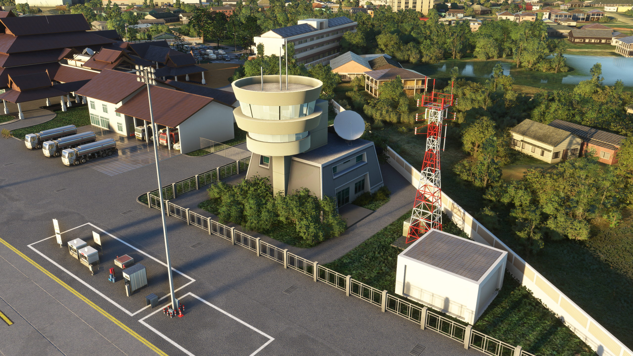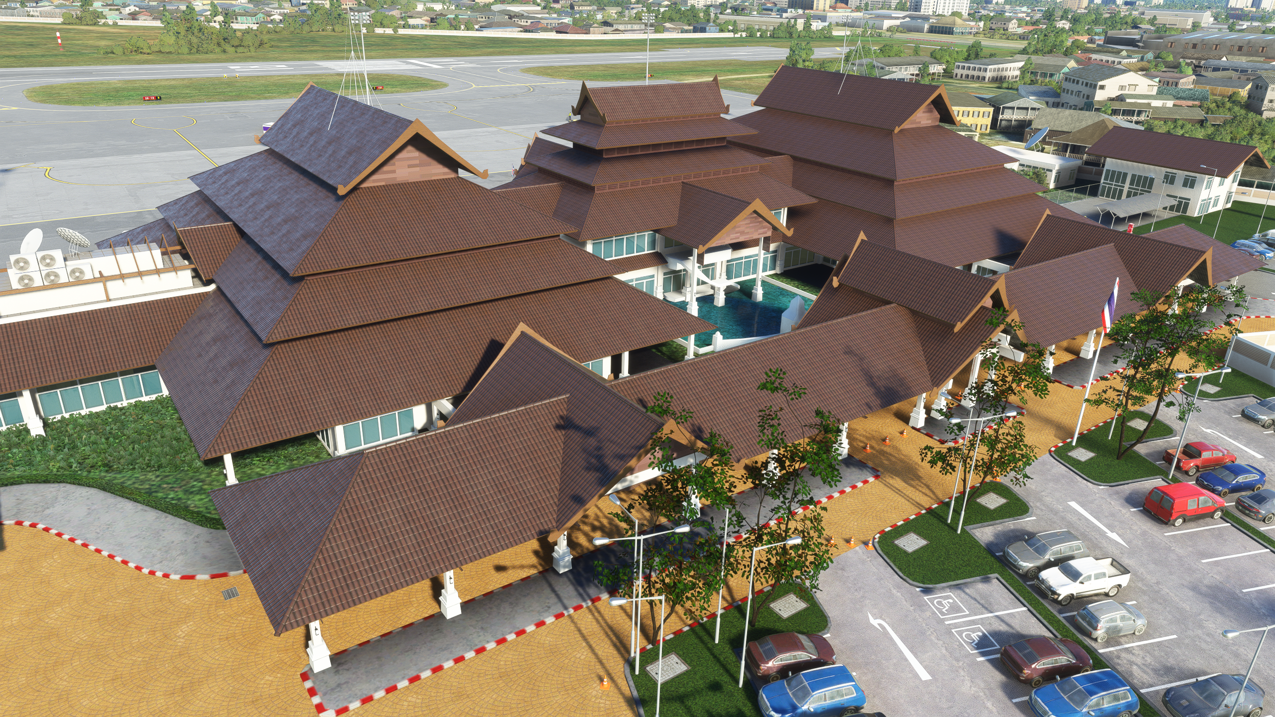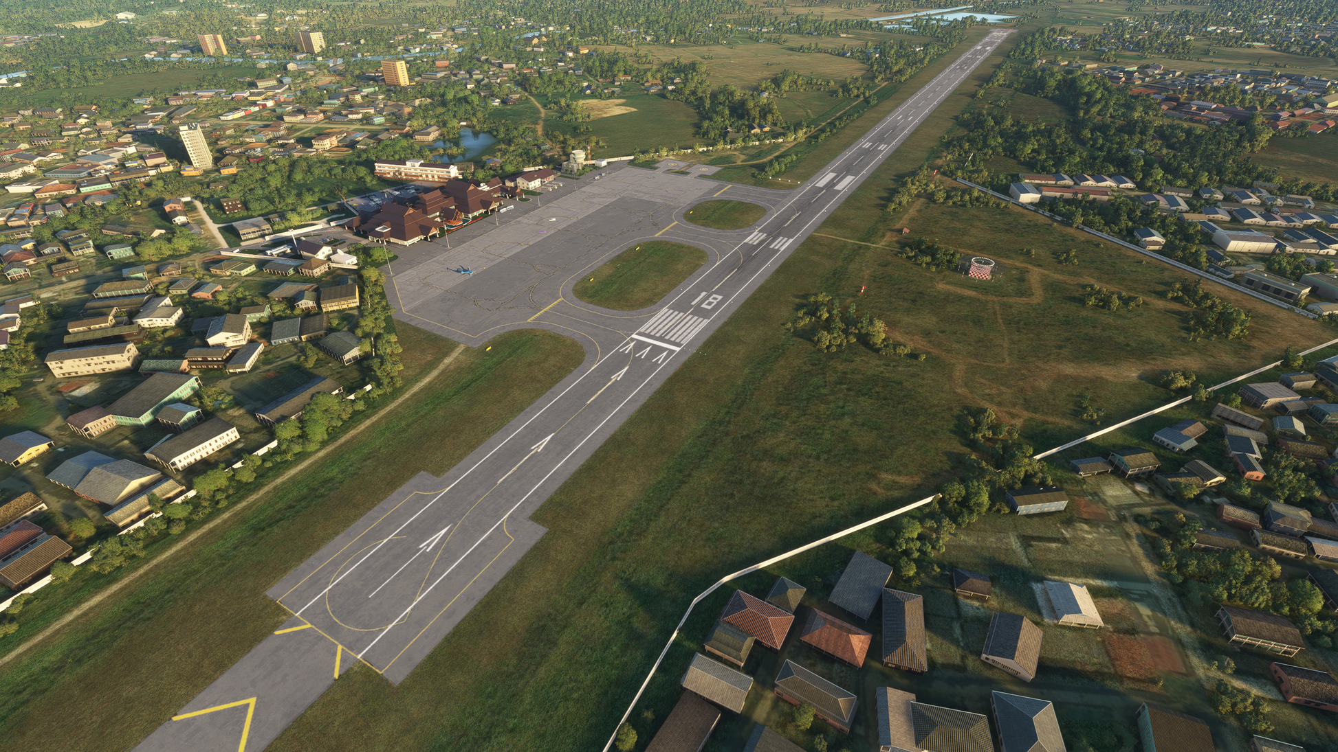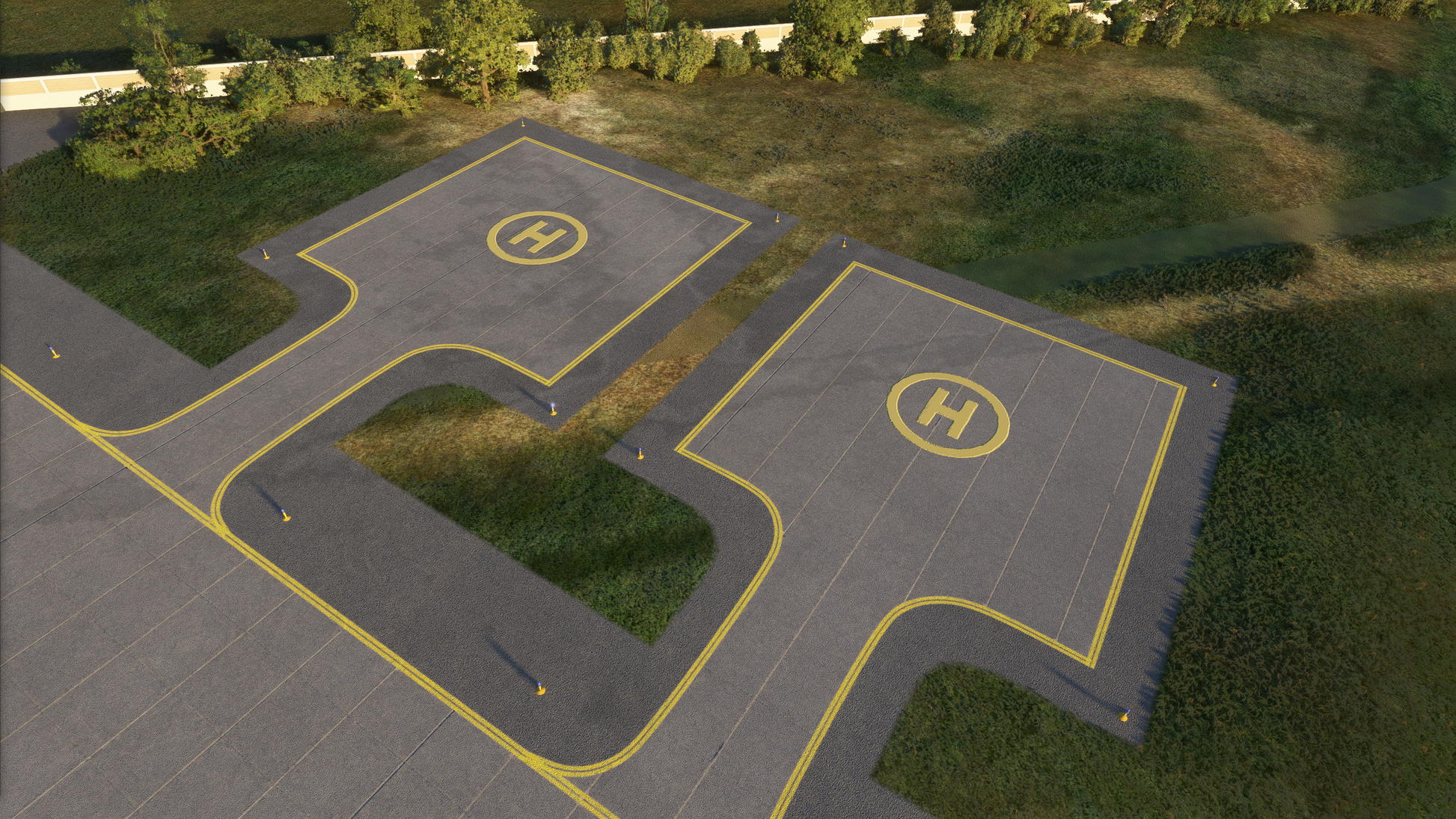 - Taxiways, aprons, and runways match the real airport