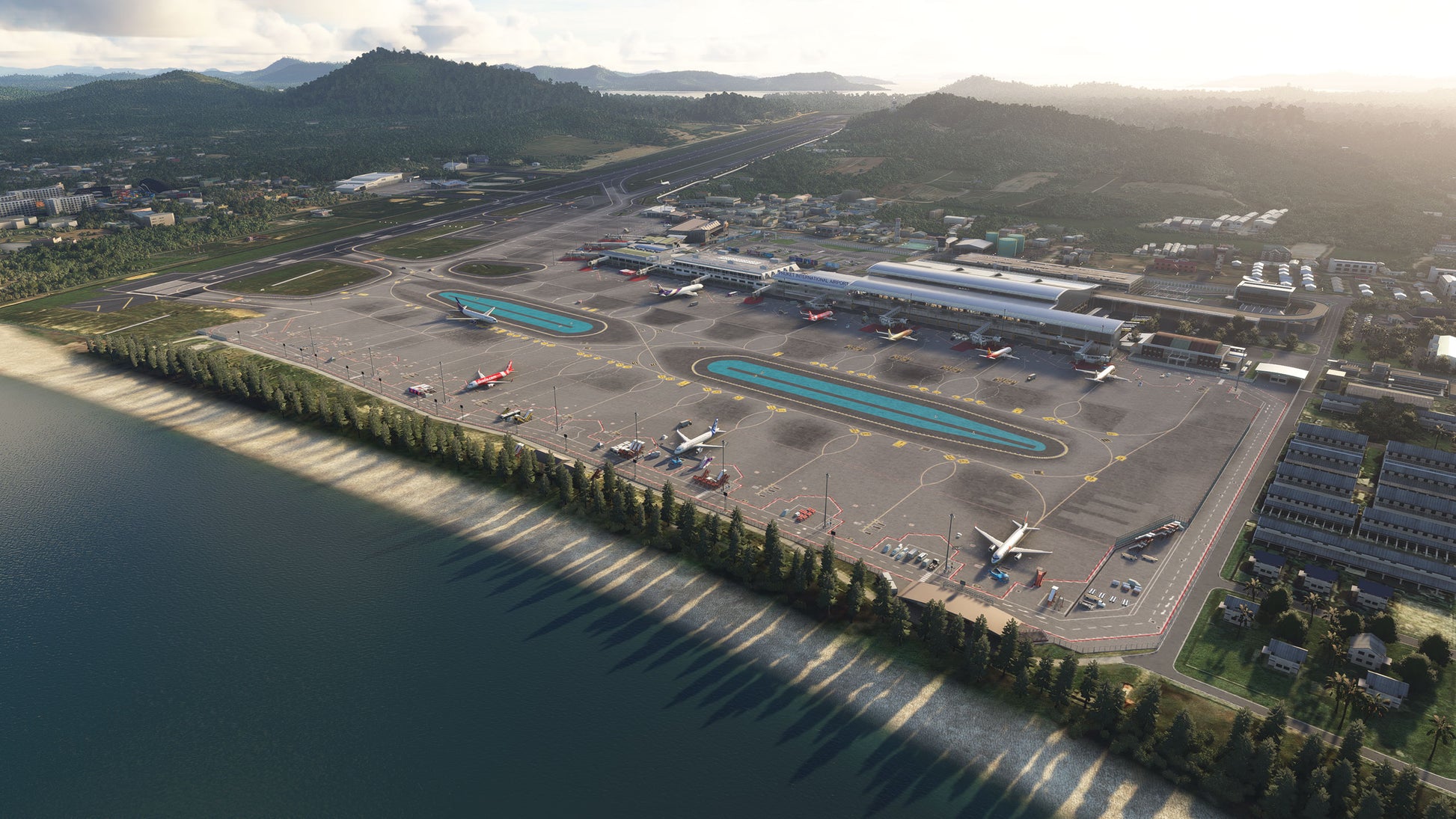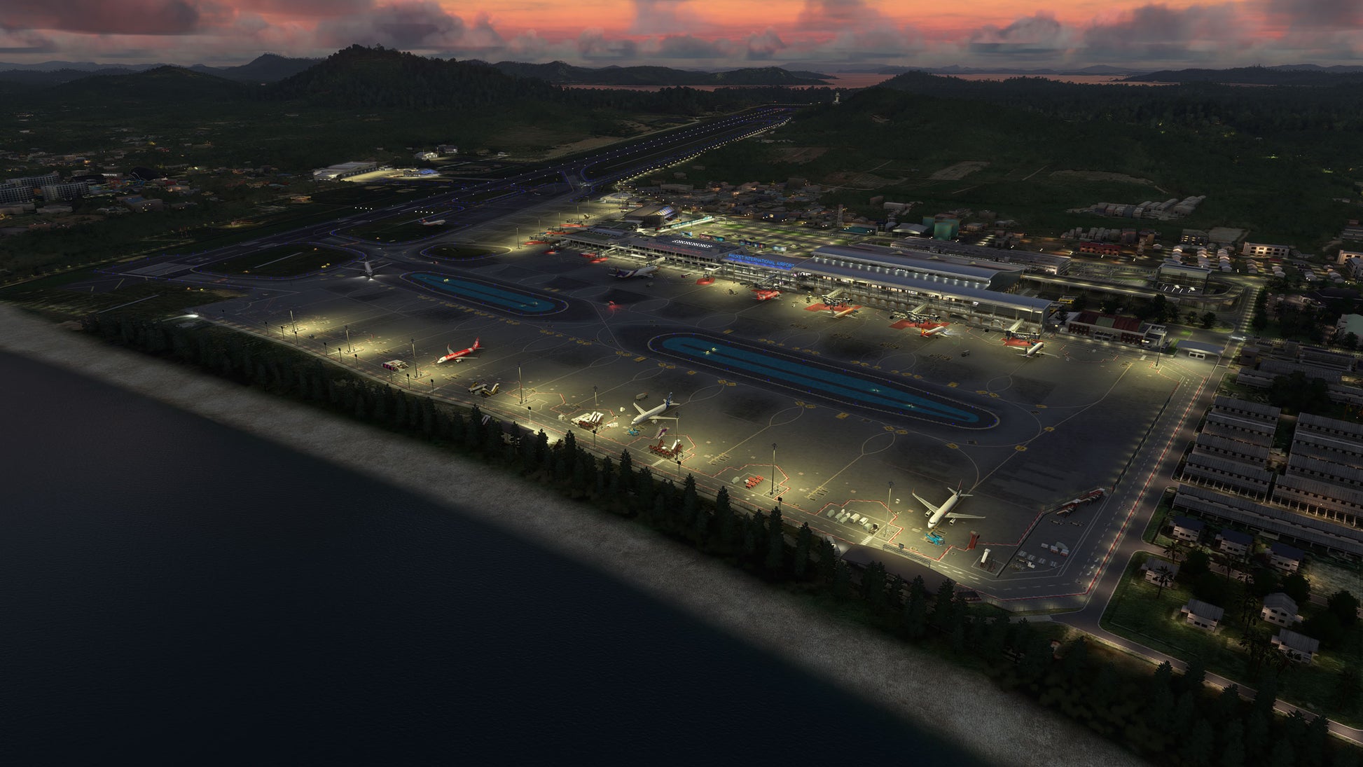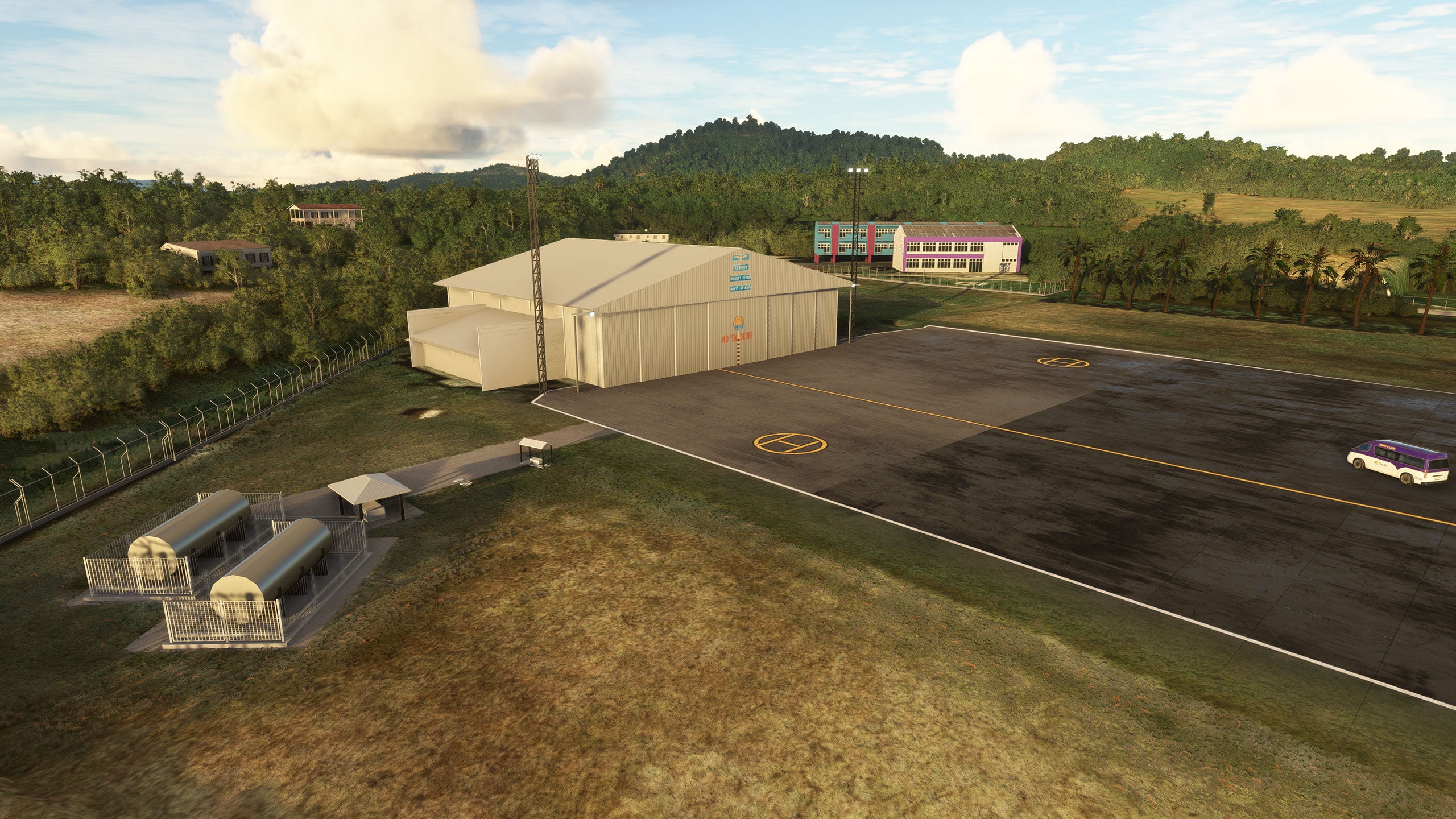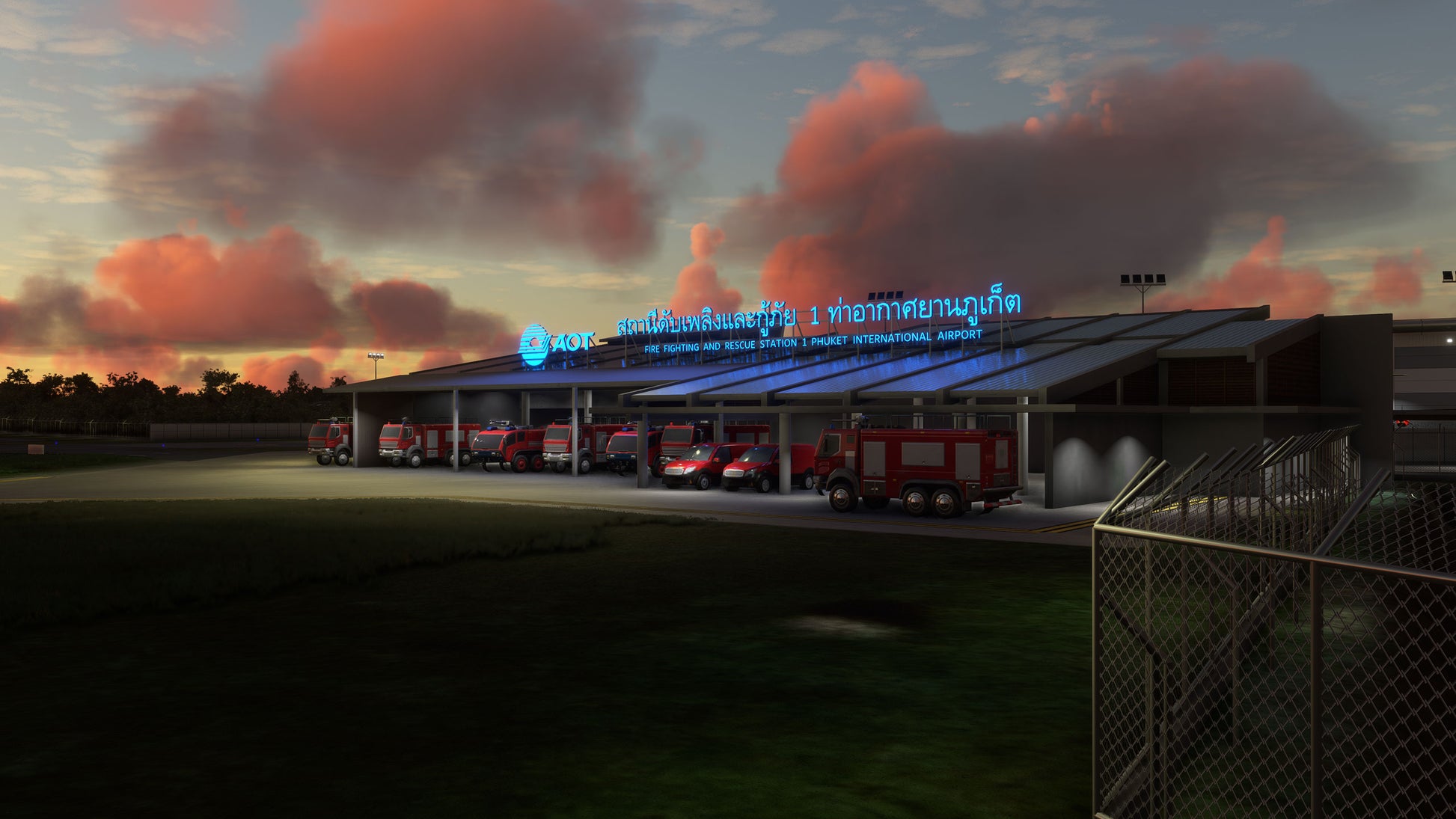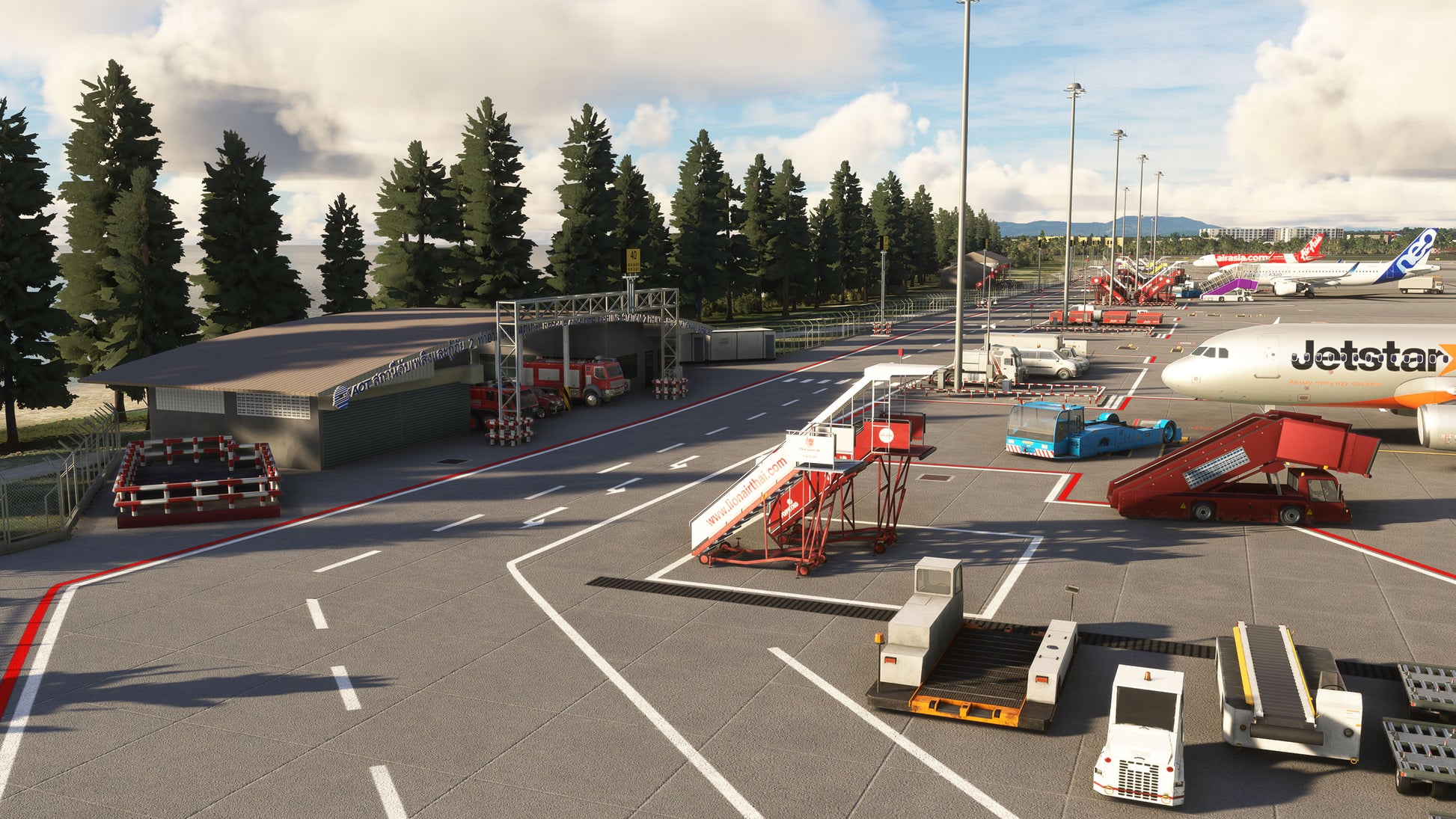 - Custom ground texture, and static objects around the airport