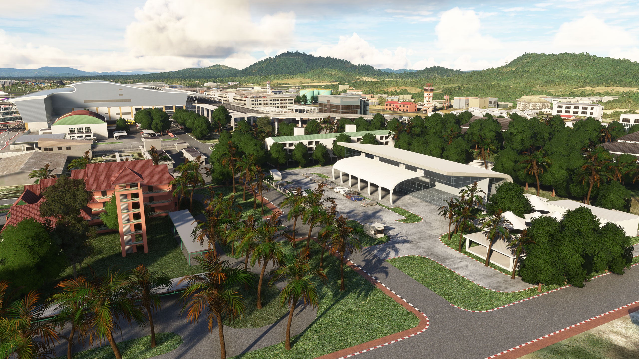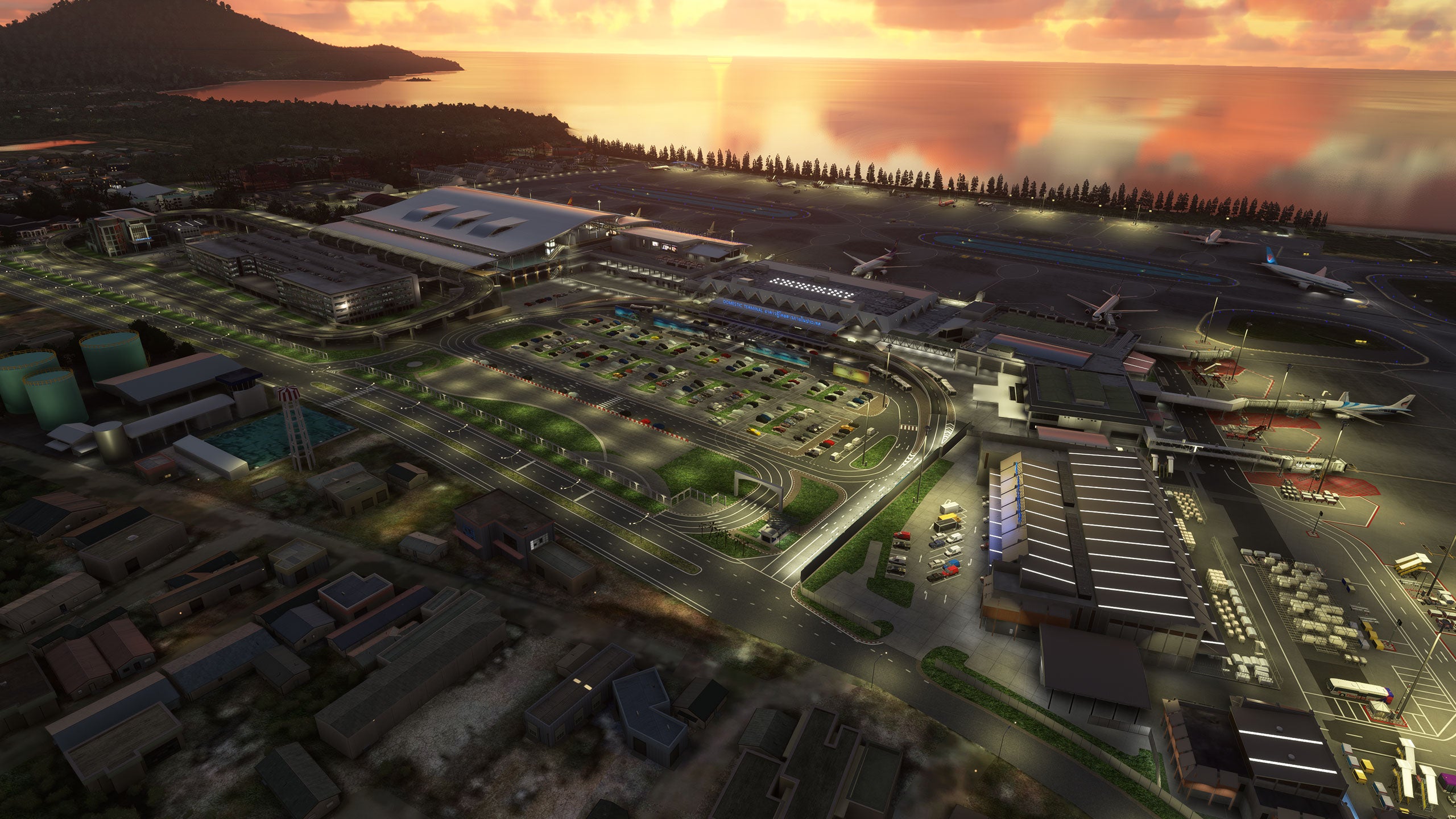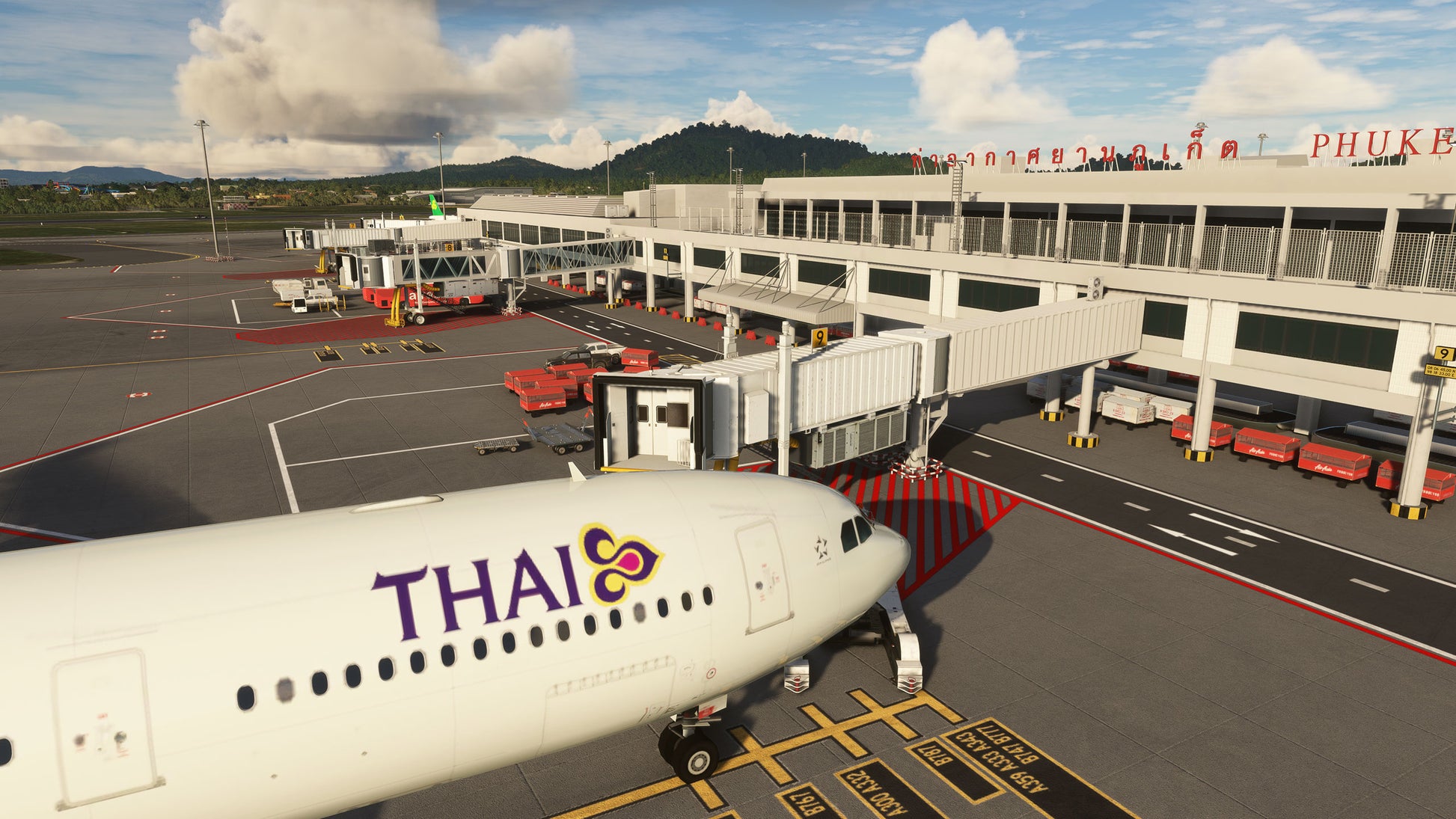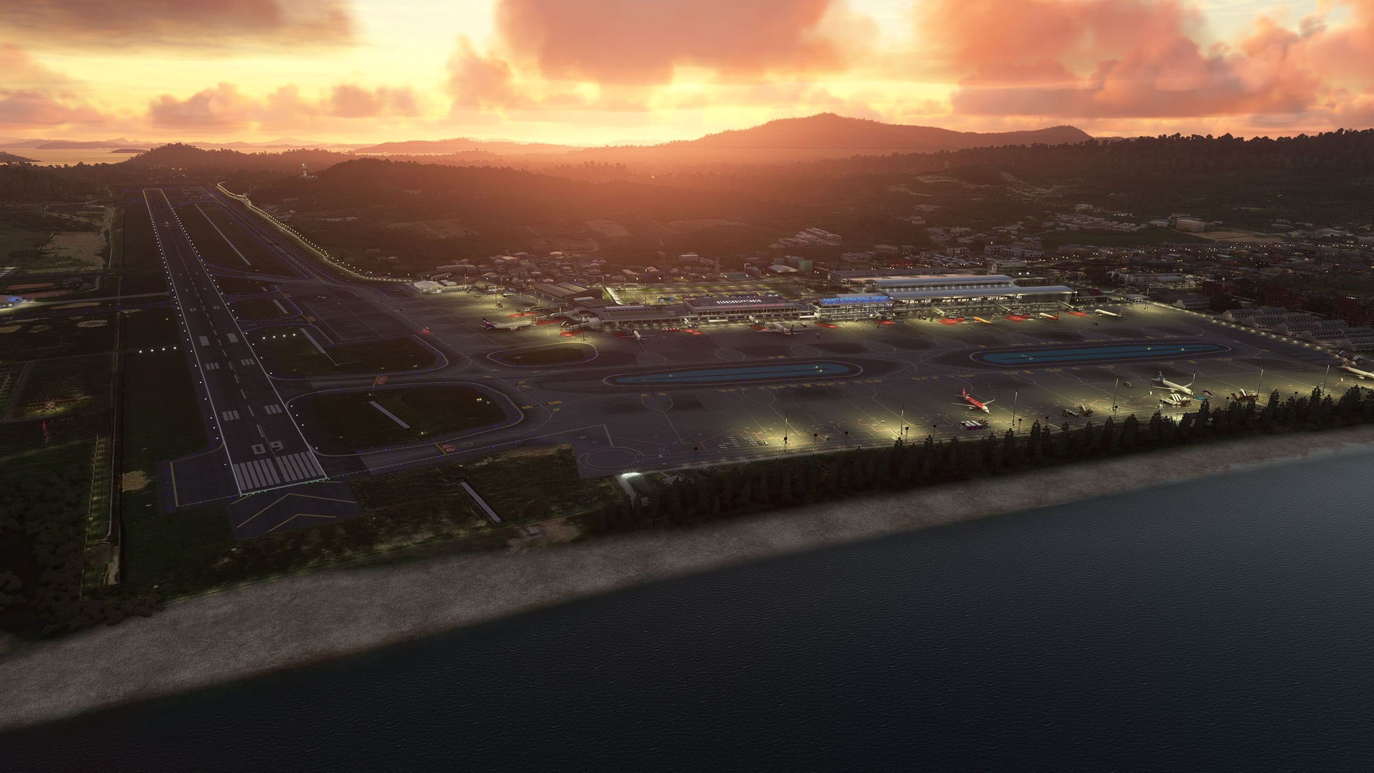 - Custom ground texture, and static objects around the airport