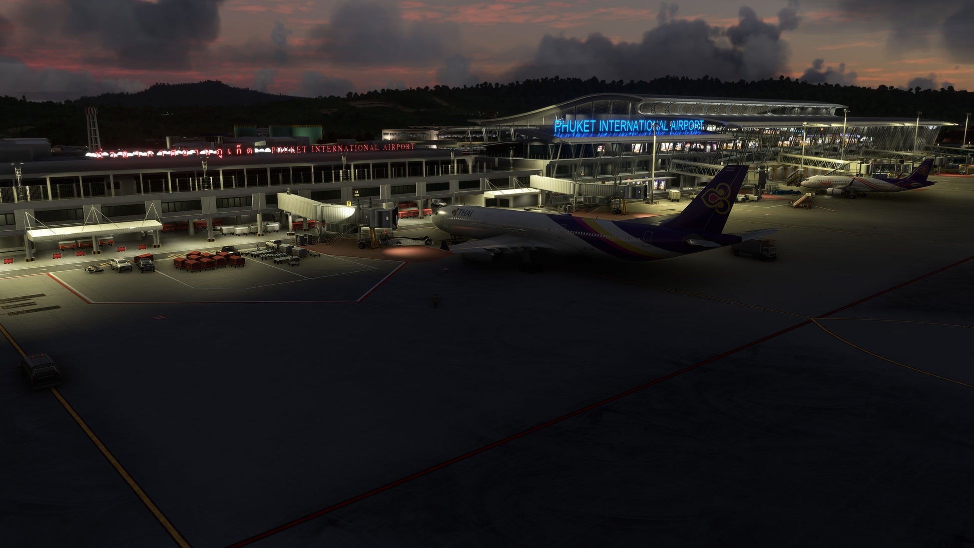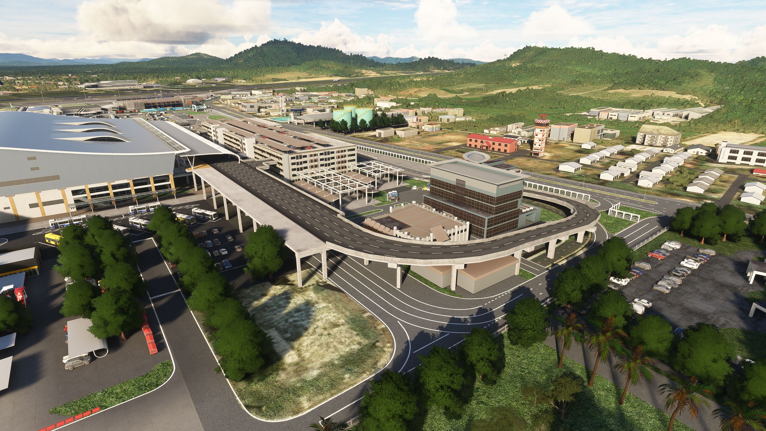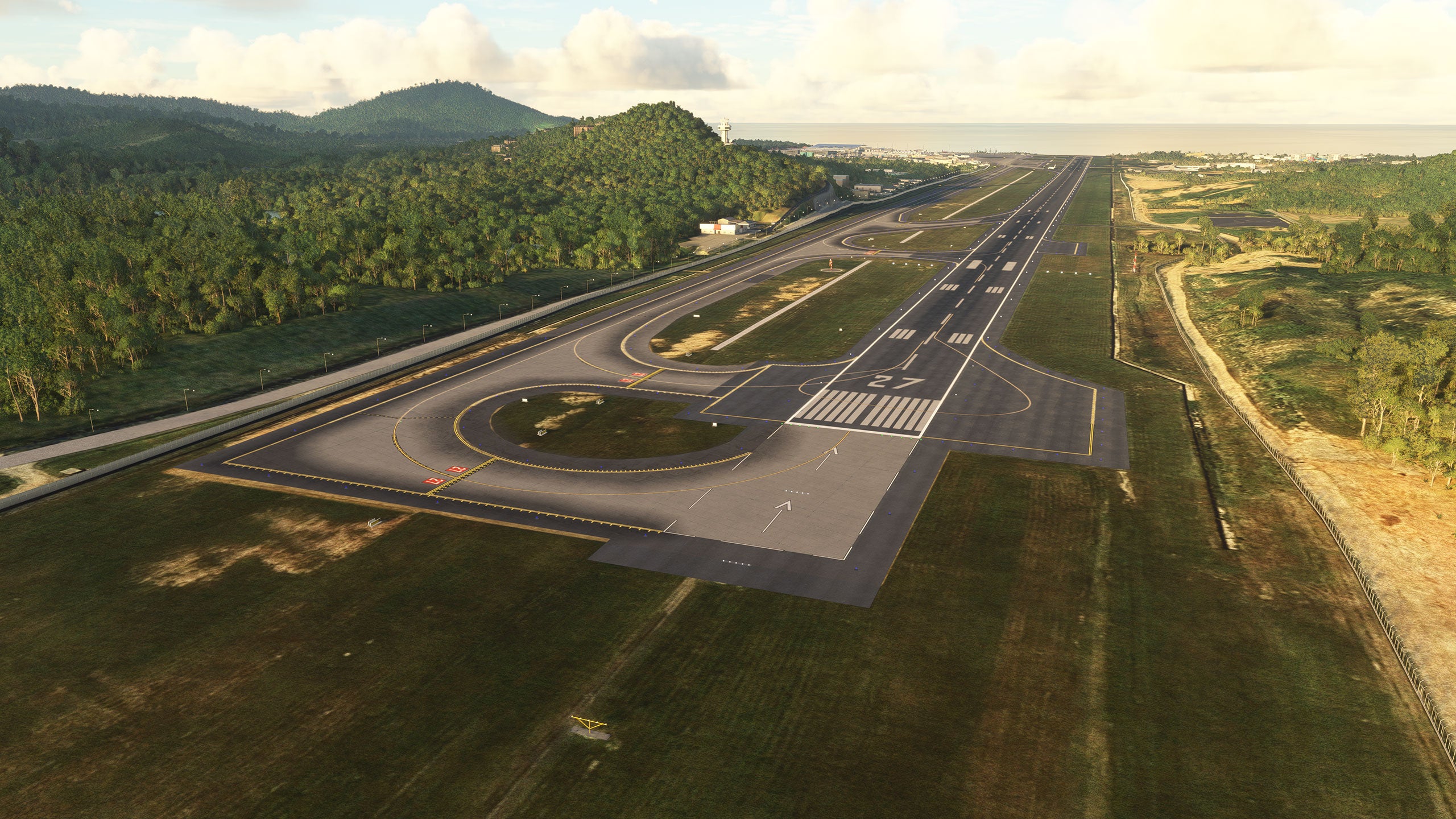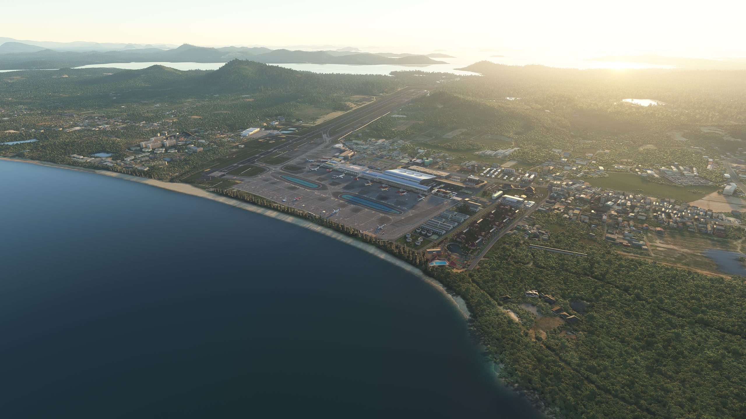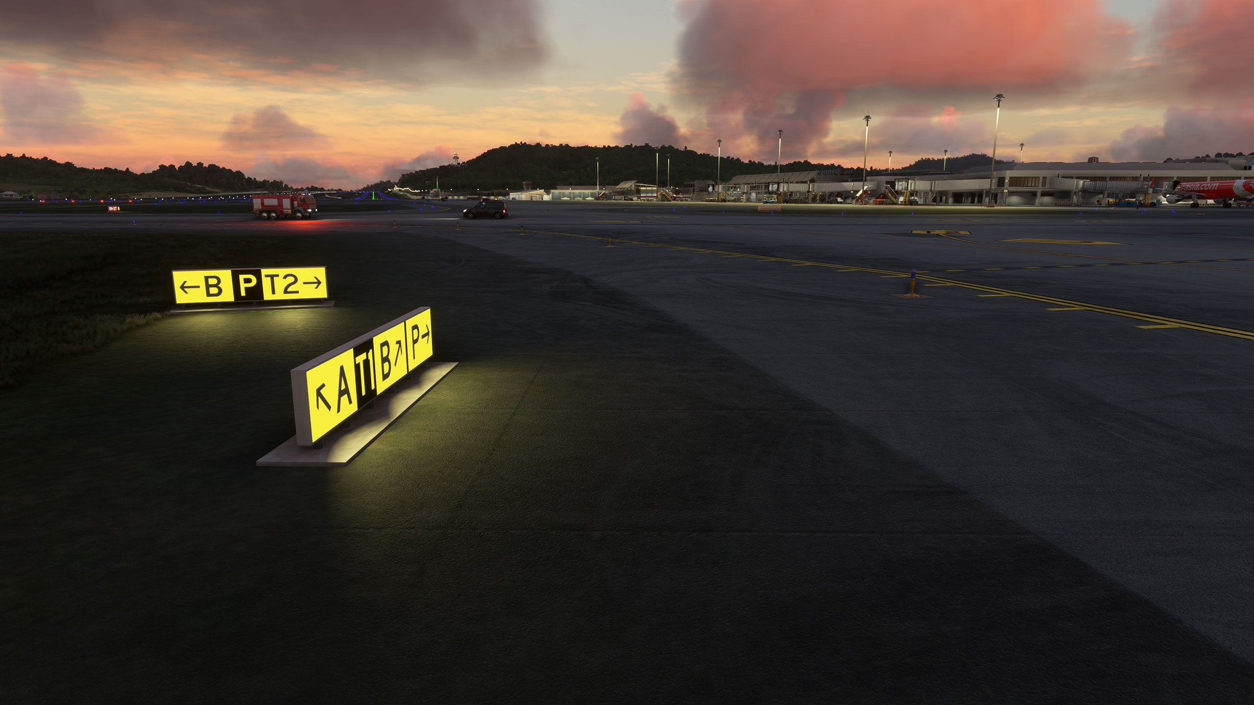 - Custom ground texture, and static objects around the airport
