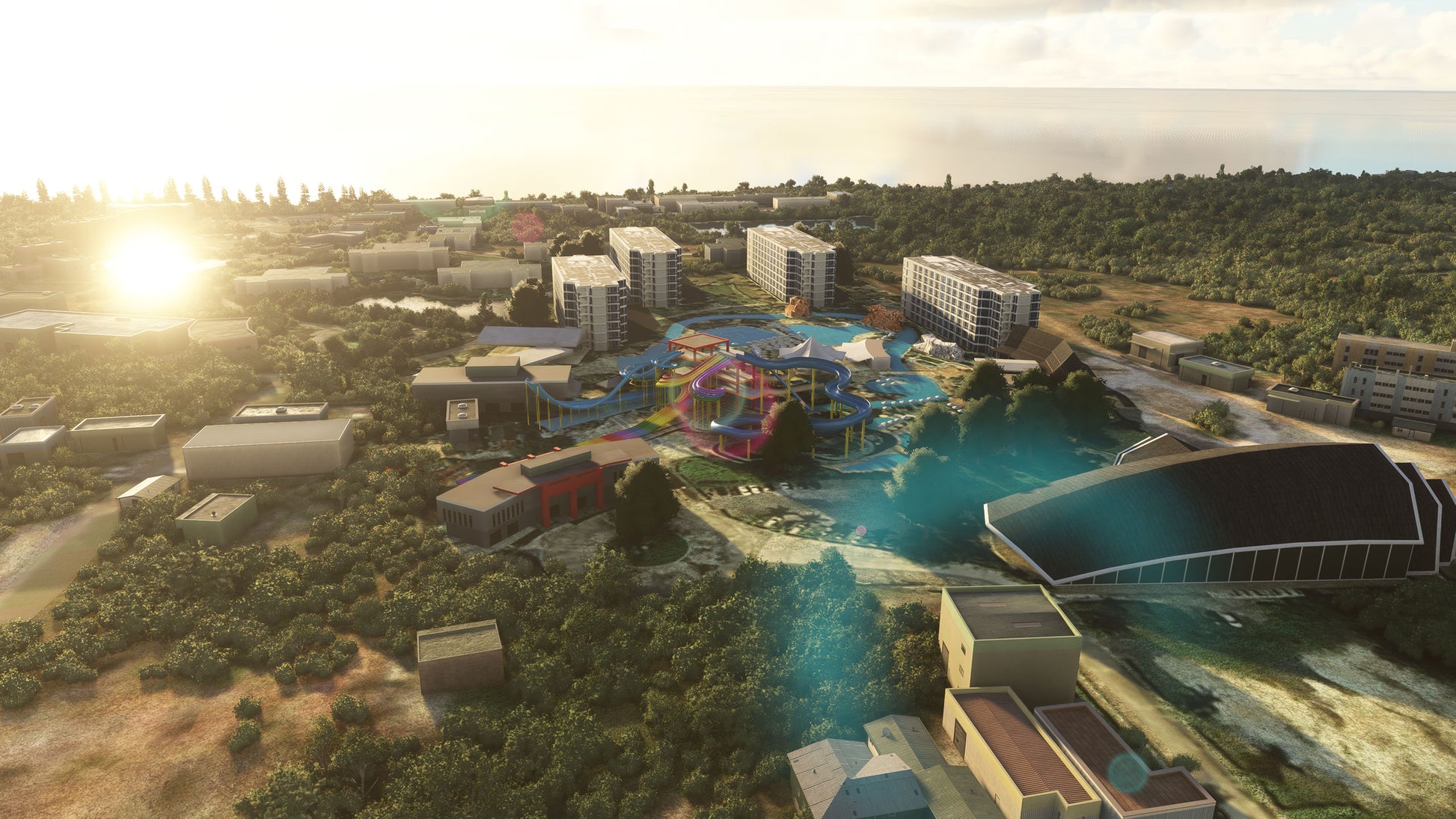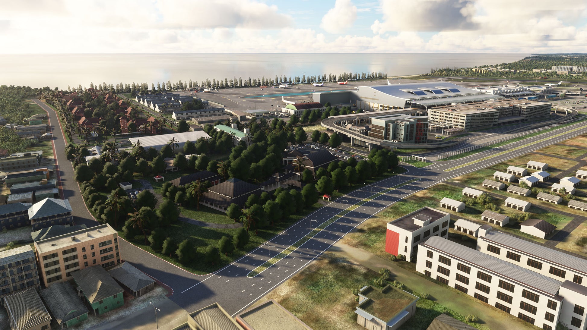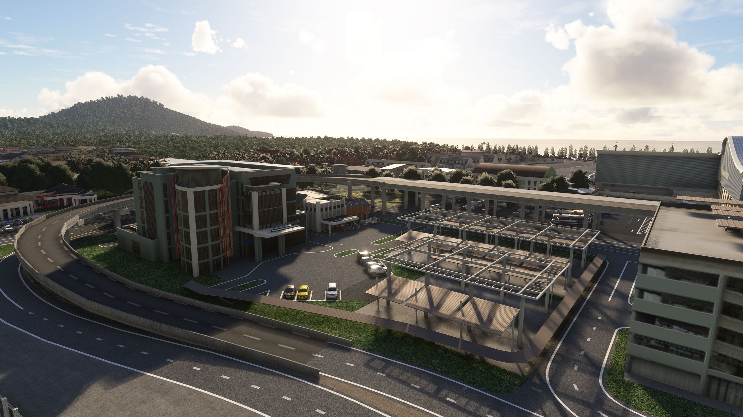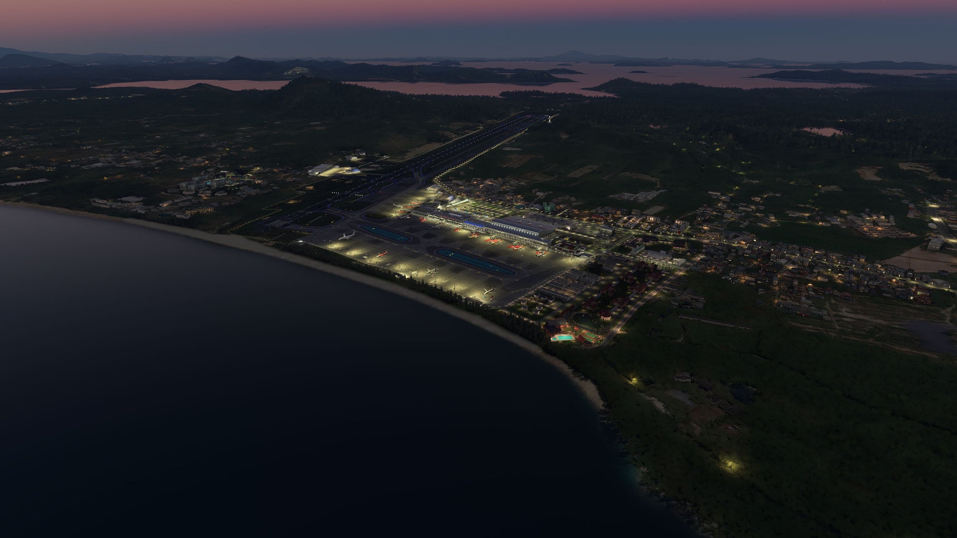 - Custom ground texture, and static objects around the airport