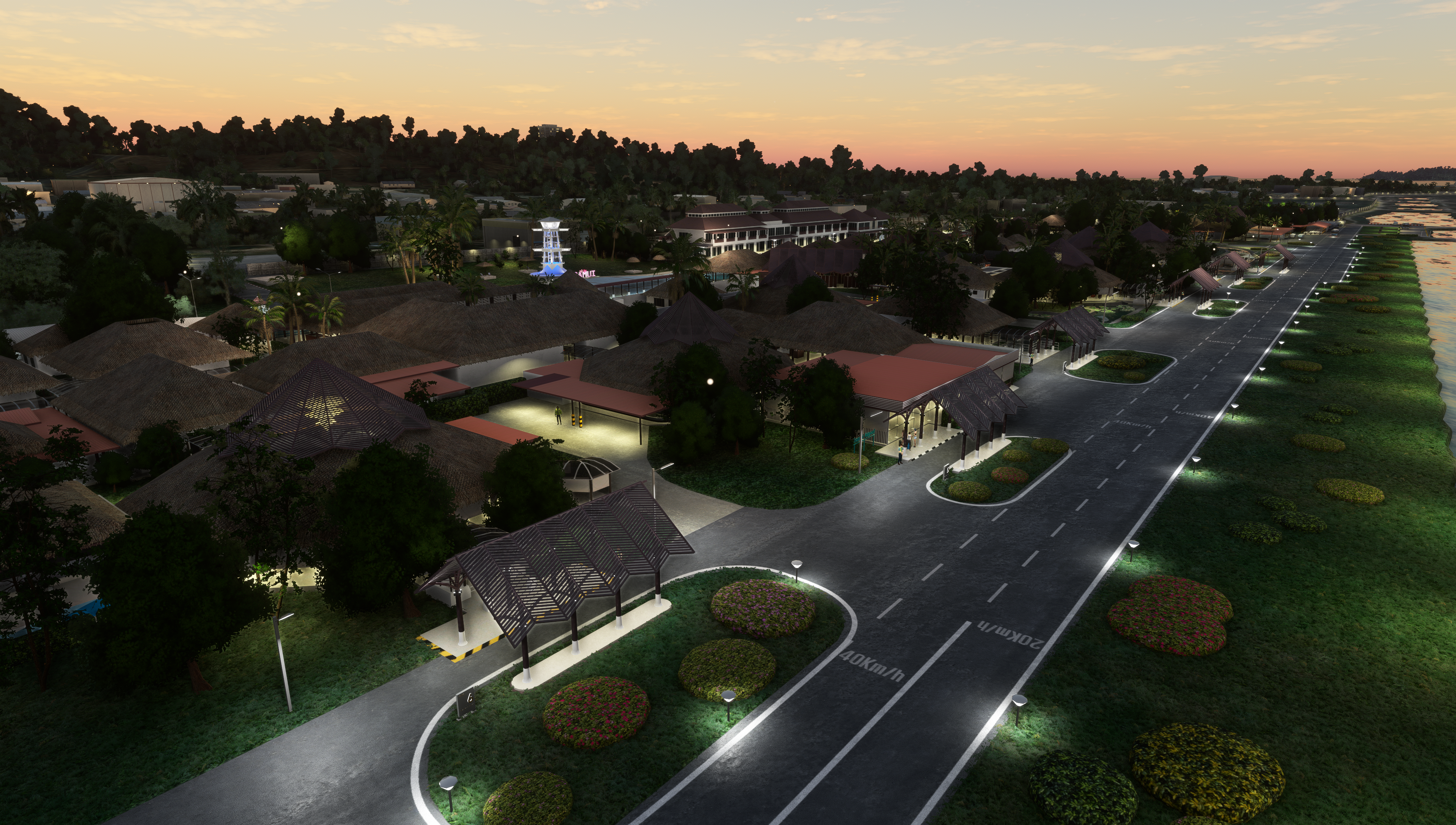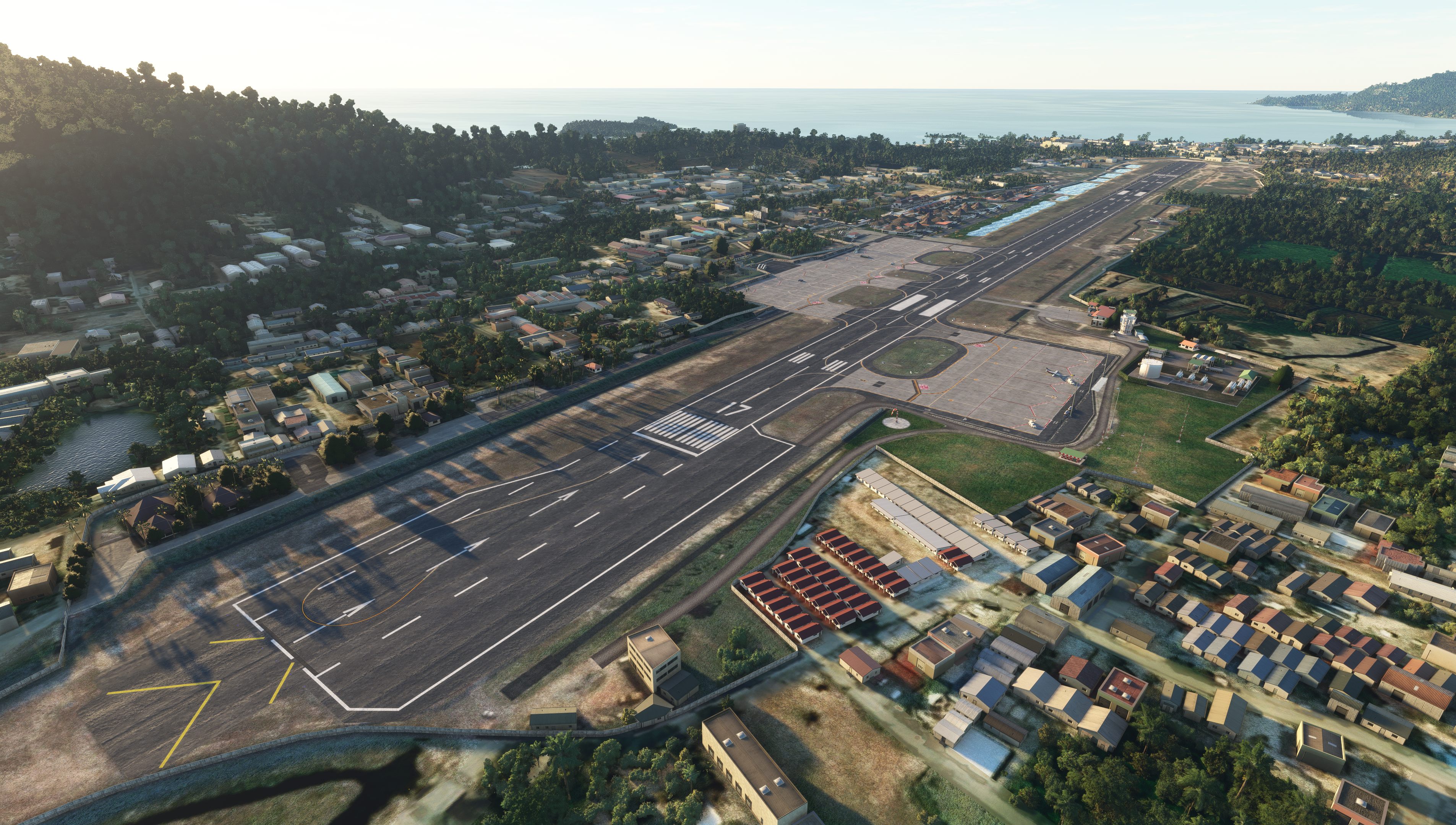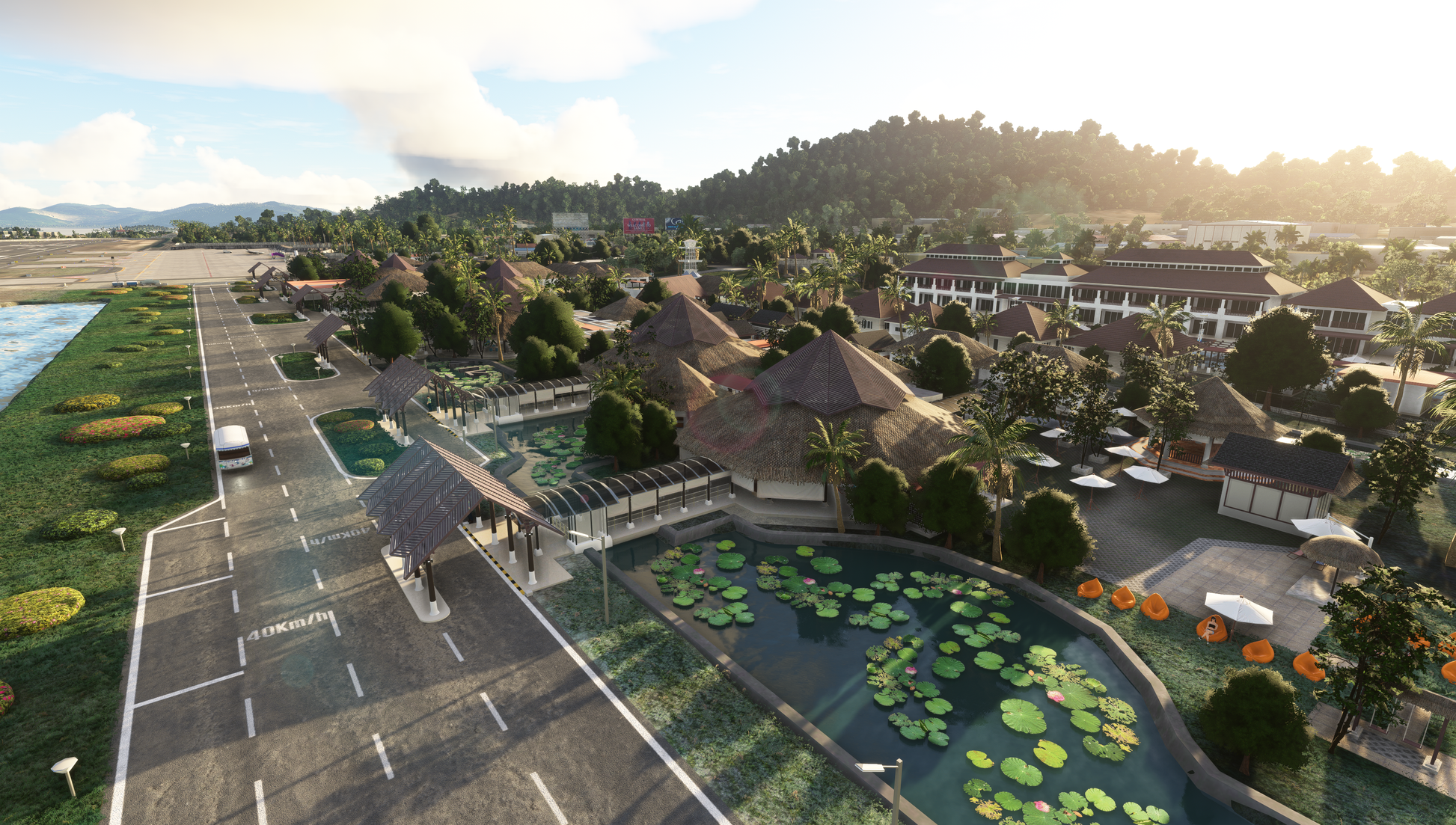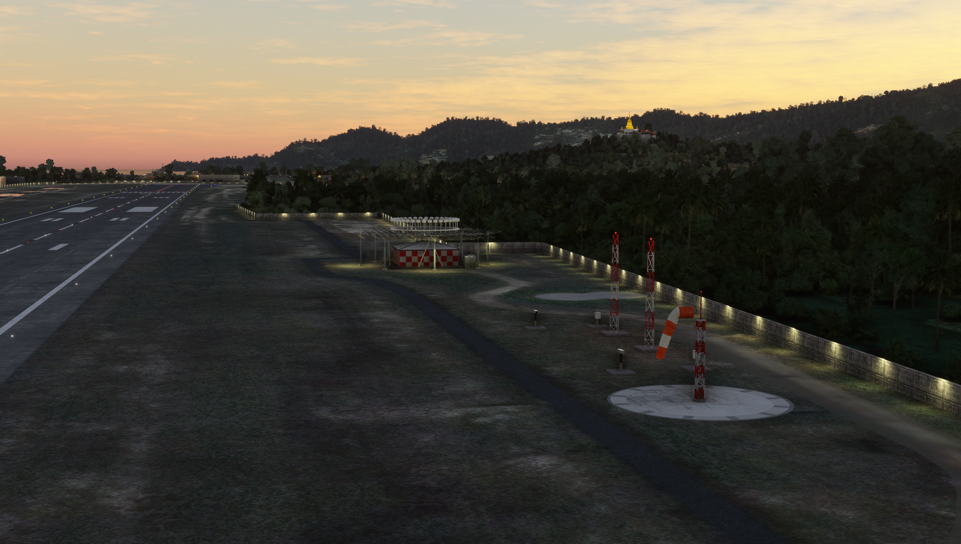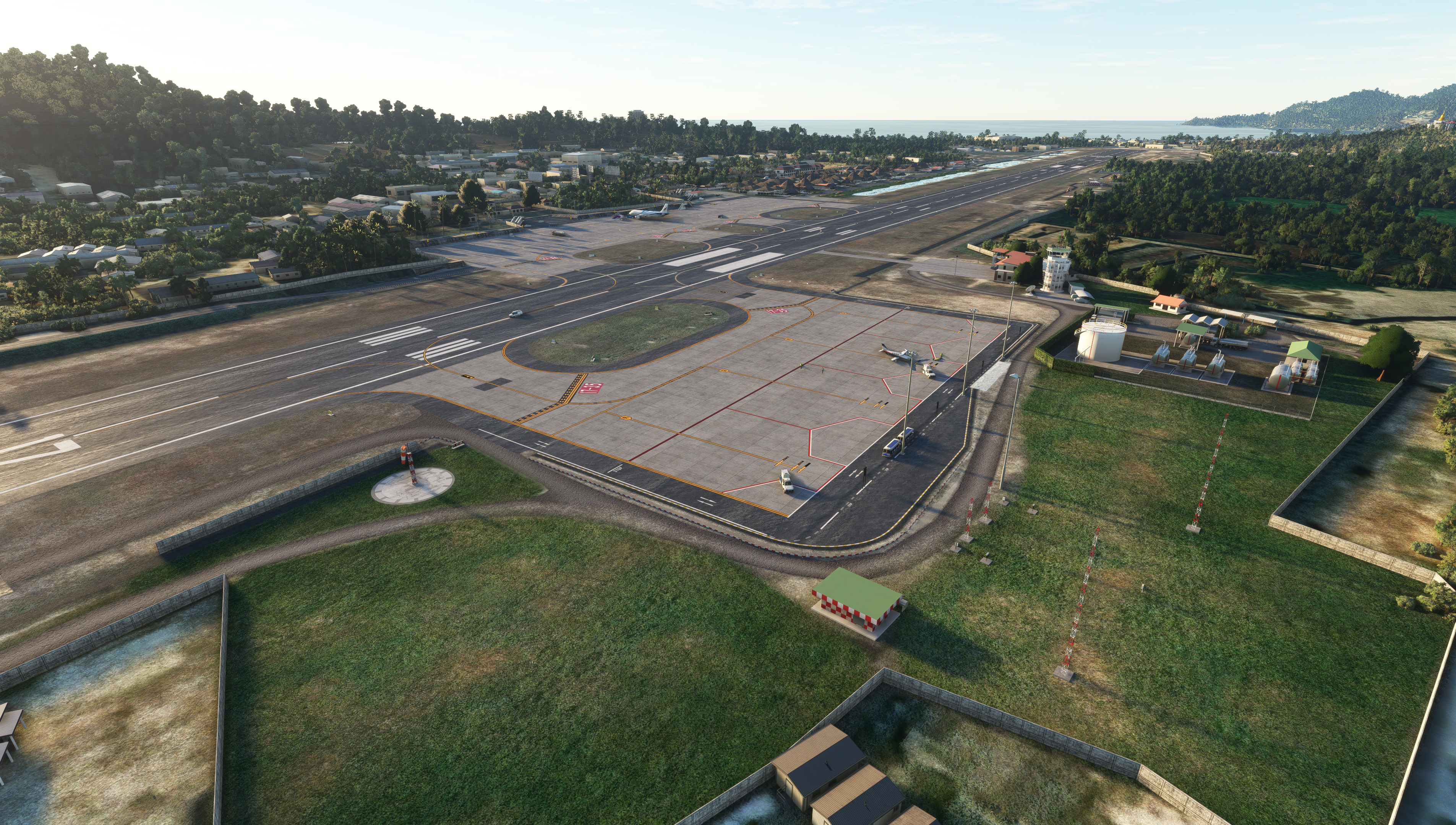 - Custom ground texture. Static objects around the airport