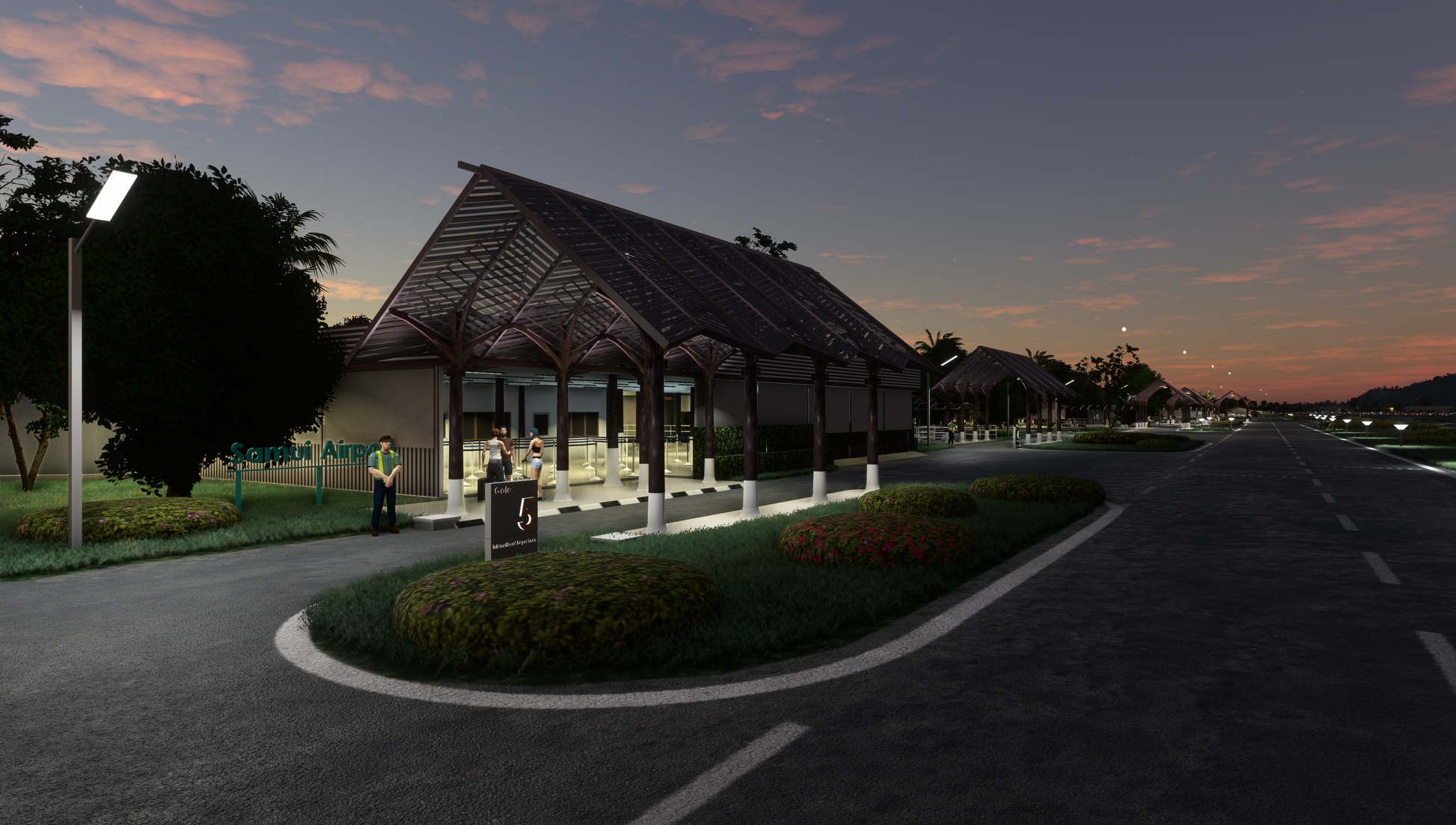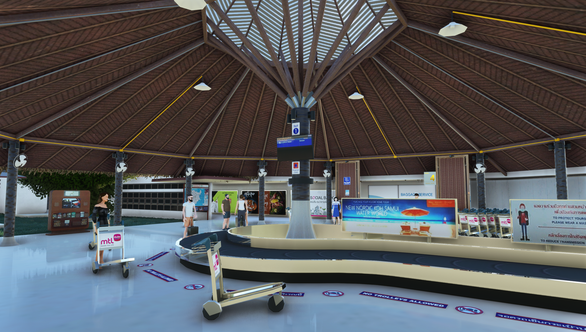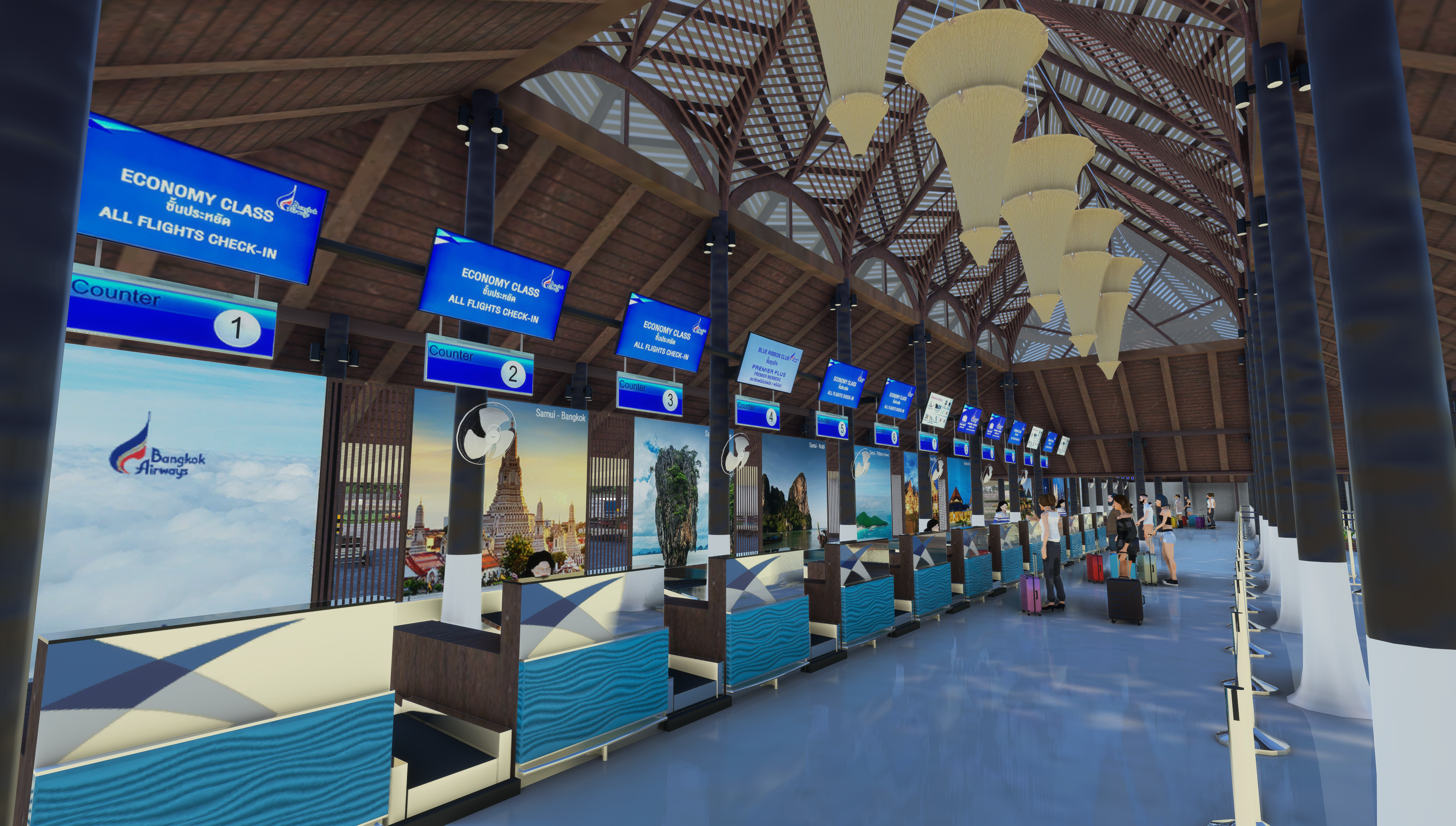- Animated low-poly passengers and Bangkok Airways staff