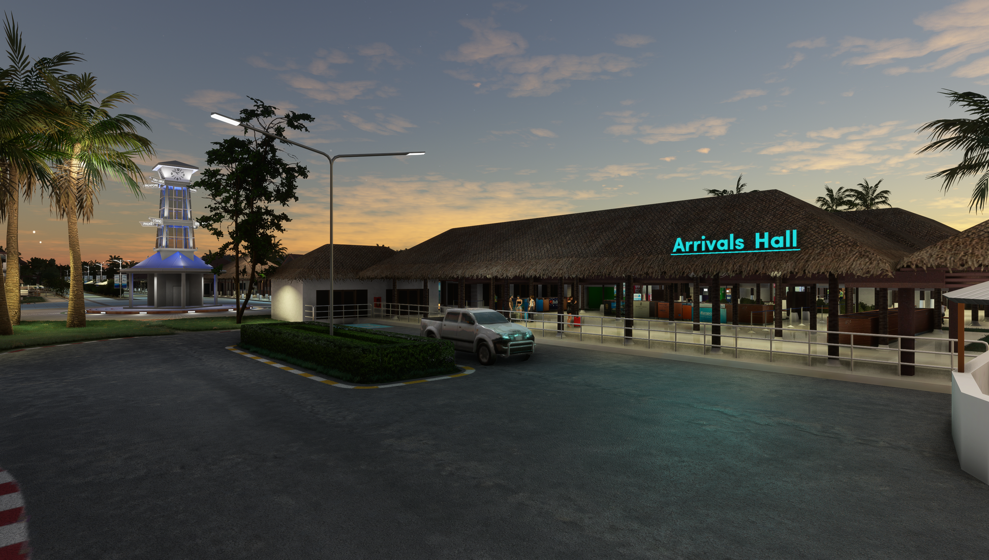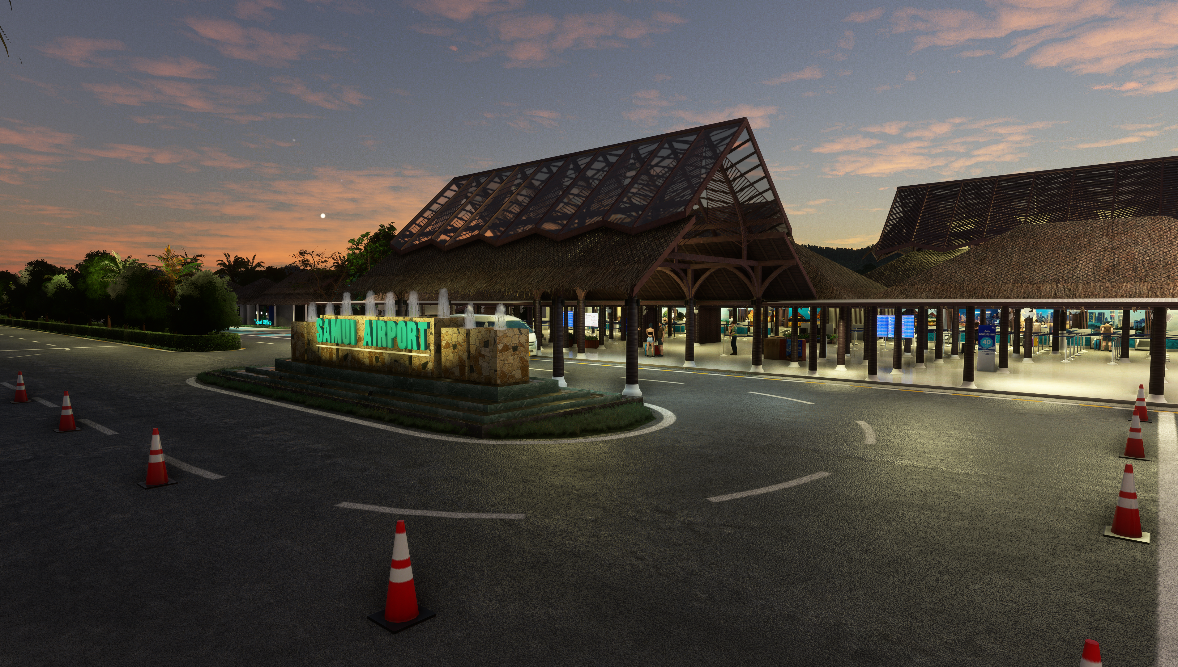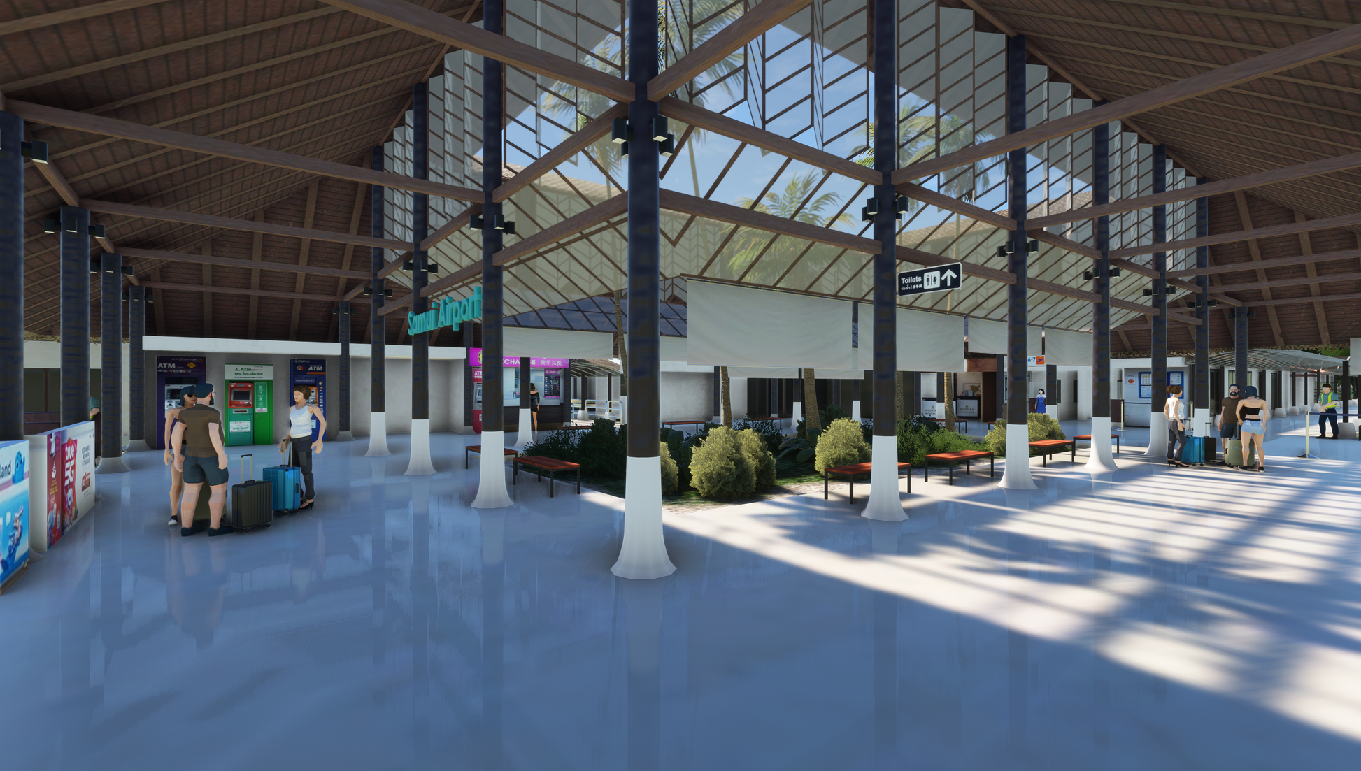 - Animated low-poly passengers and Bangkok Airways staff