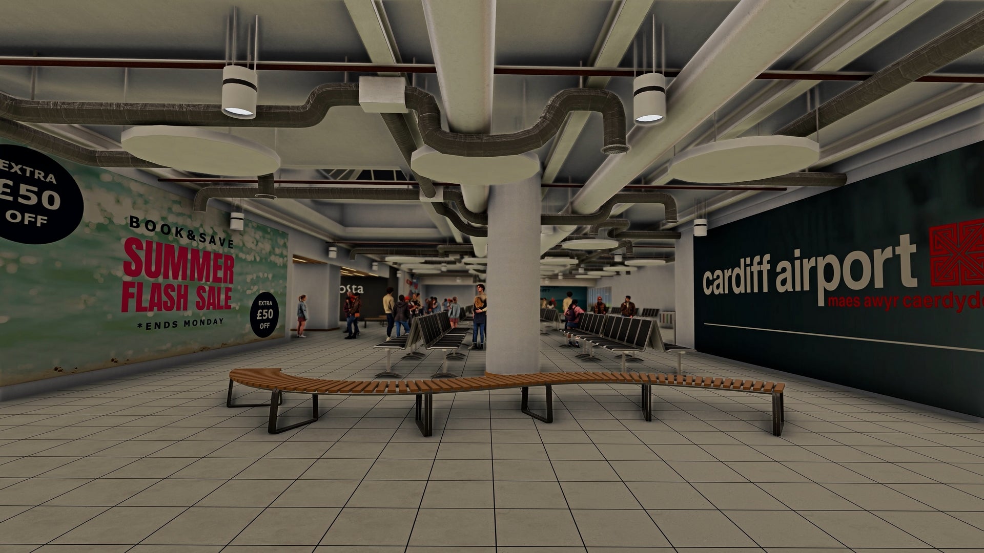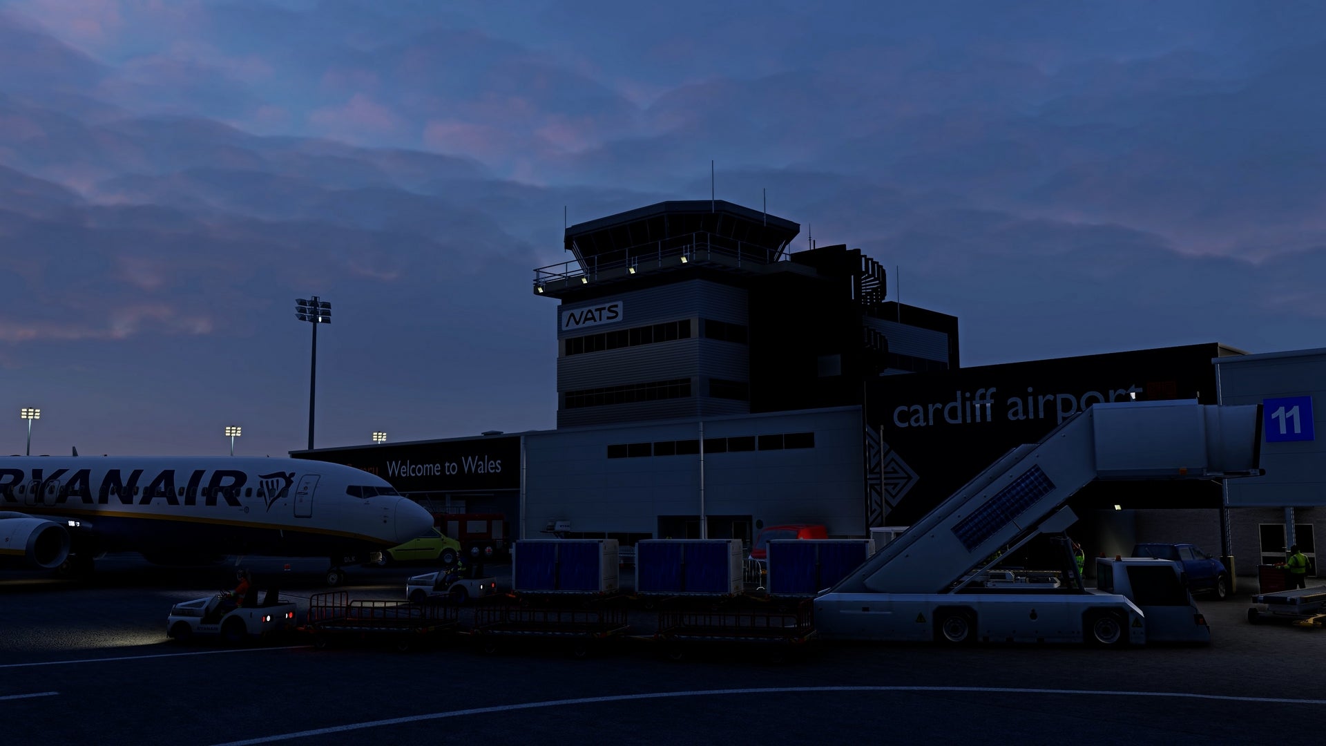 Developed for SoFly by the talented team at SkyHigh Studios, Cardiff Airport represents a leap in technology, utilising the latest tools to bring you impressive dynamic lighting, animated people in the accurate terminal building, and populated external areas. Not only that, but Cardiff Airport also showcases our first look at our new NxtGen Jetways - realistic and fully animated jetways that offer true realism.