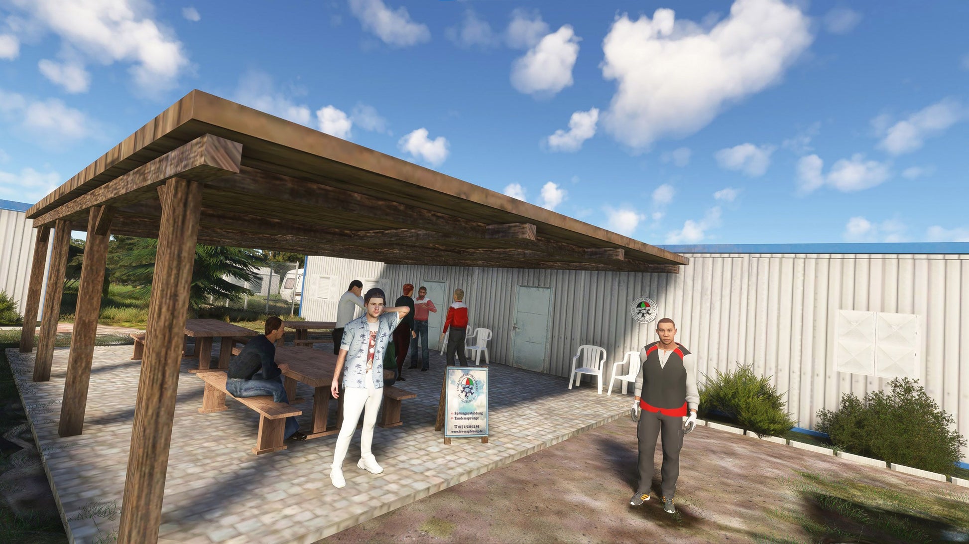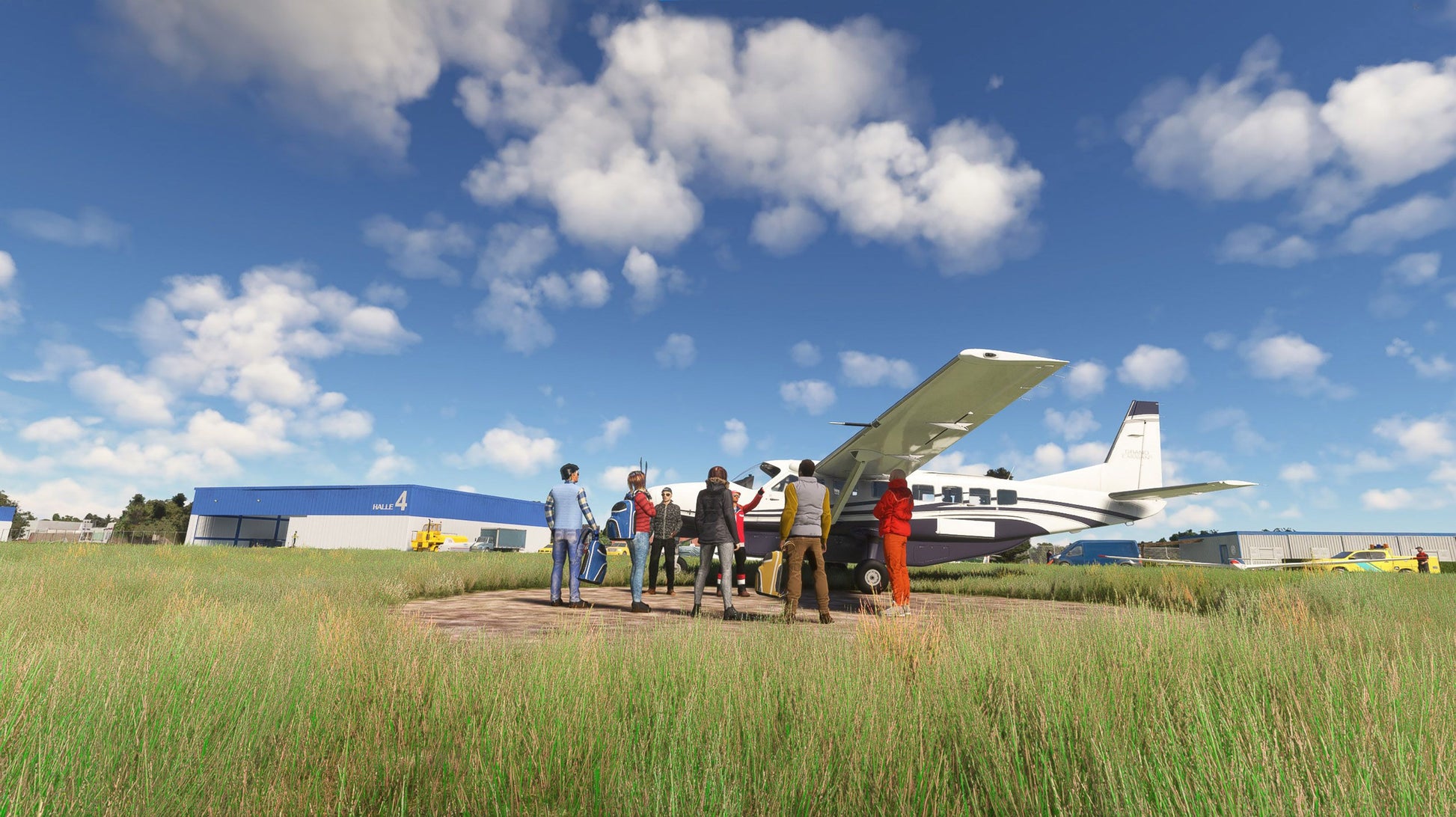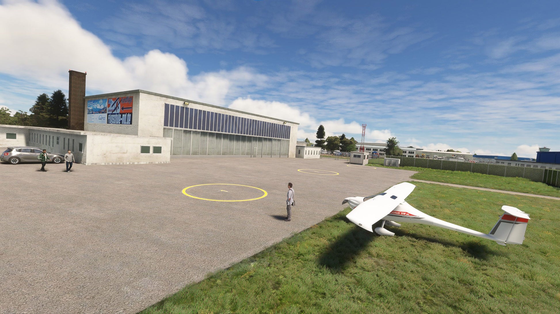 There are neither charter nor scheduled flights. The runway is too short for some of the jets in question. The airfield is used primarily by aviation enthusiasts (glider pilots, parachutists), ultralight pilots and private pilots as well as for sightseeing flights.