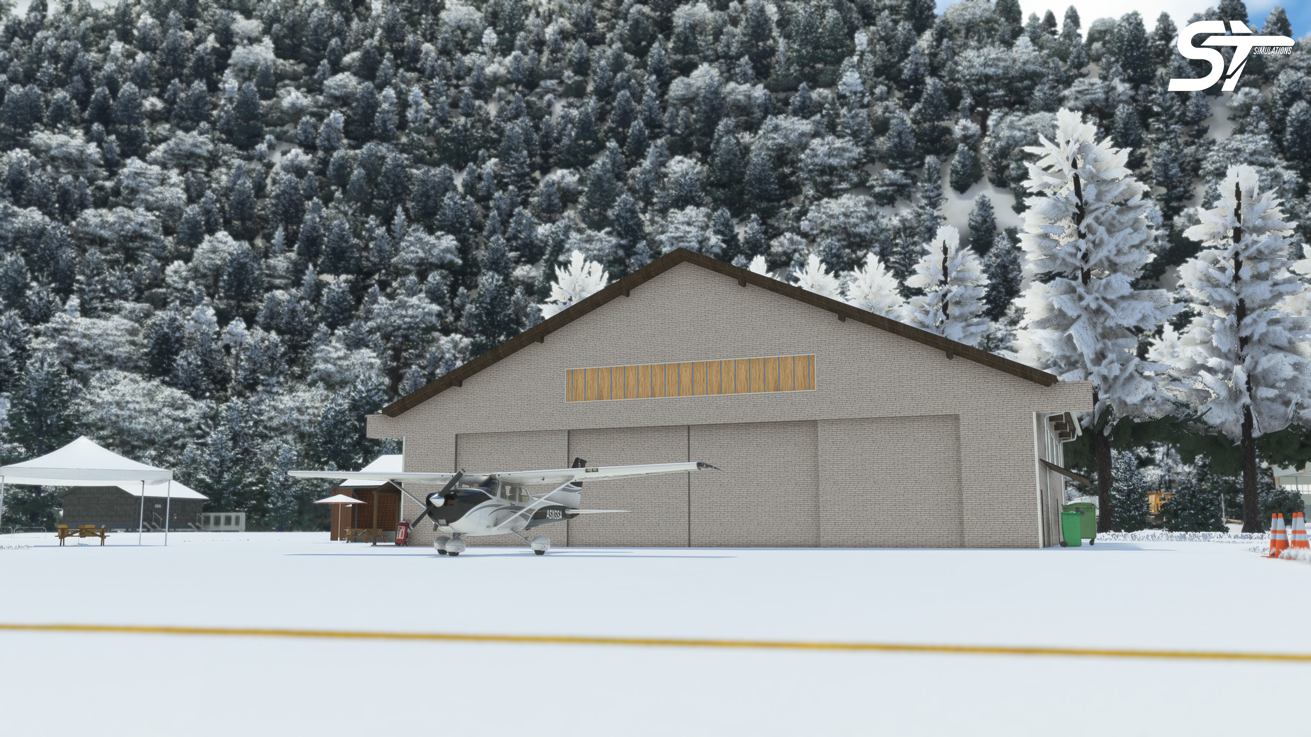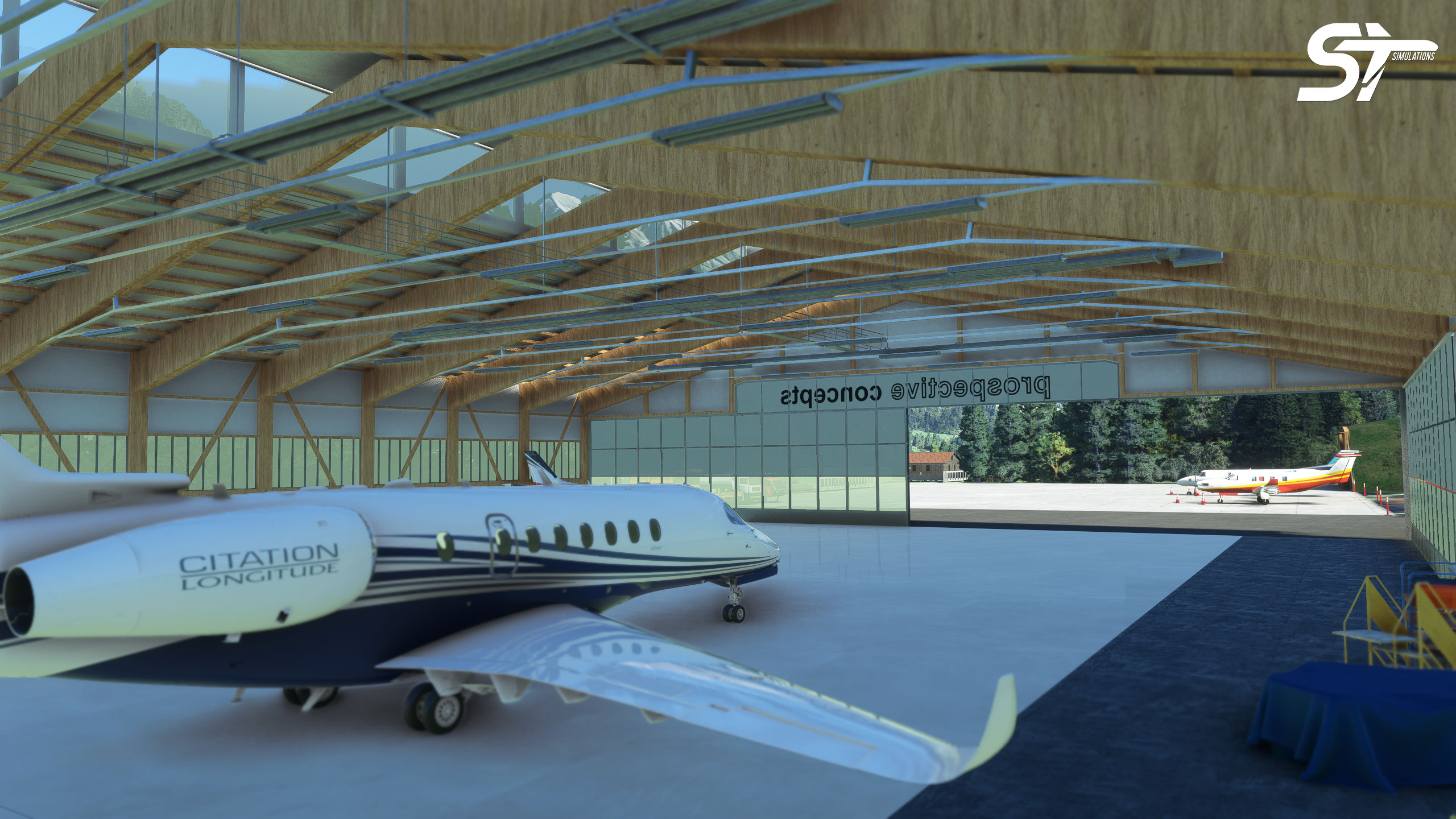 - Custom hangar of St. Stephan Airport with interior details