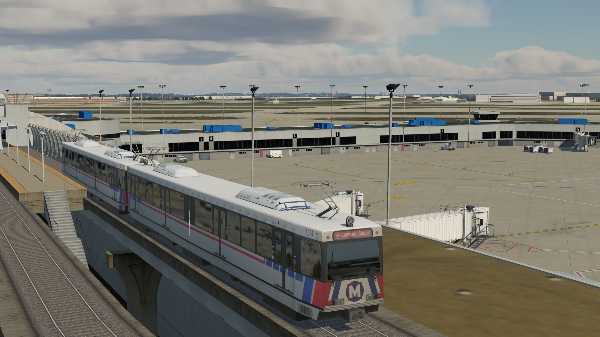- Custom modelled and animated MetroLink train, car traffic and airport traffic