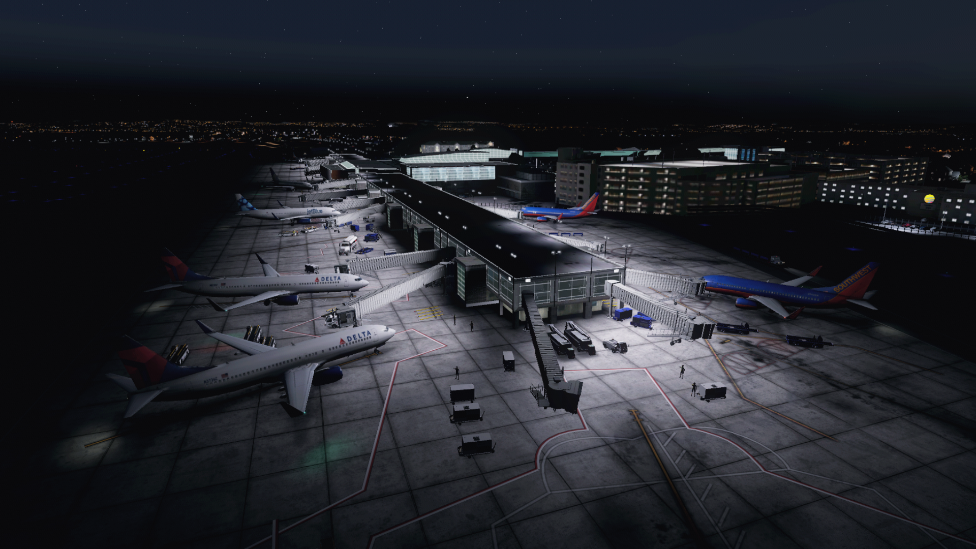 - Animated car traffic, ramp workers, airport trucks (using groundTraffic plugin)