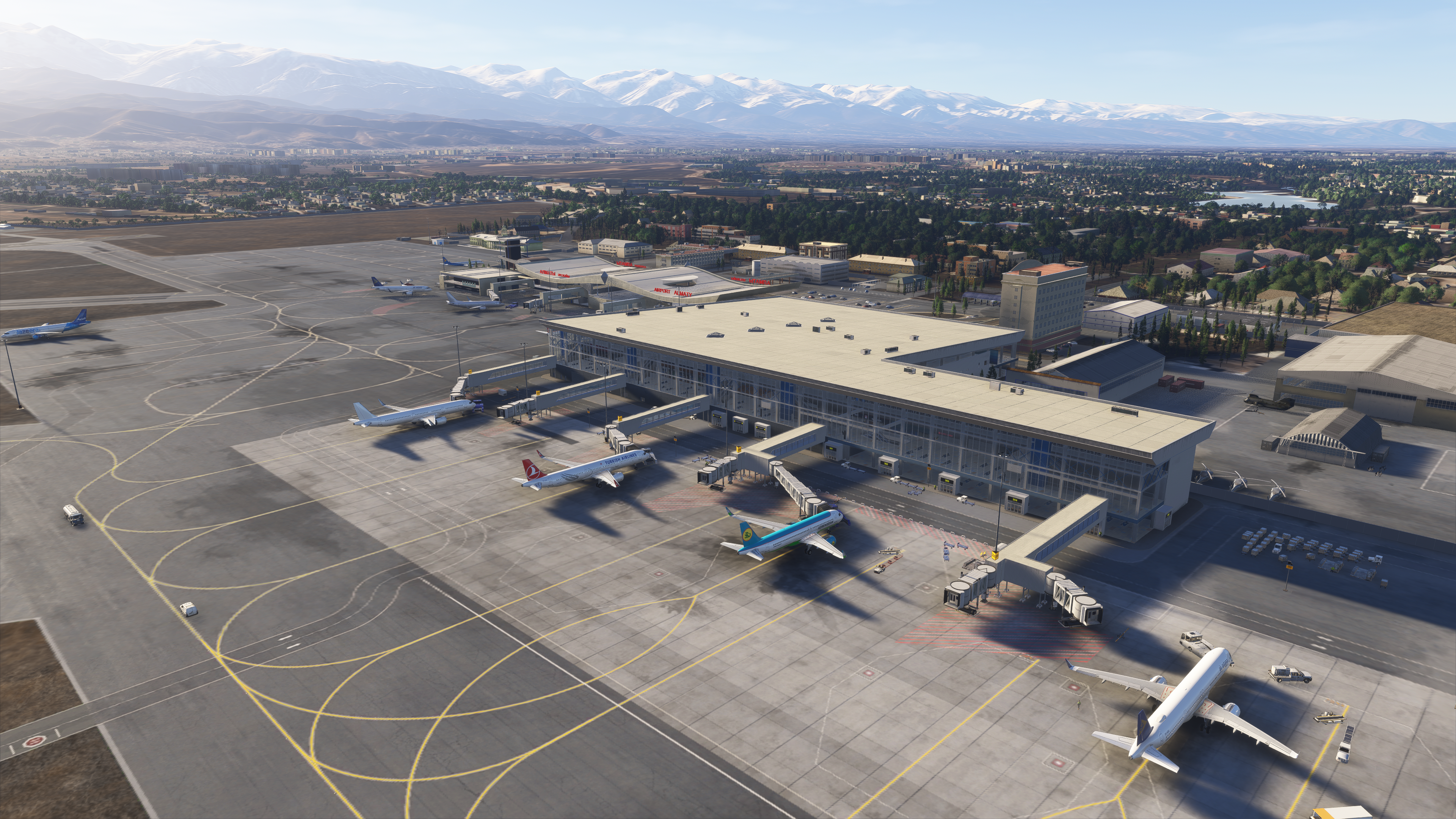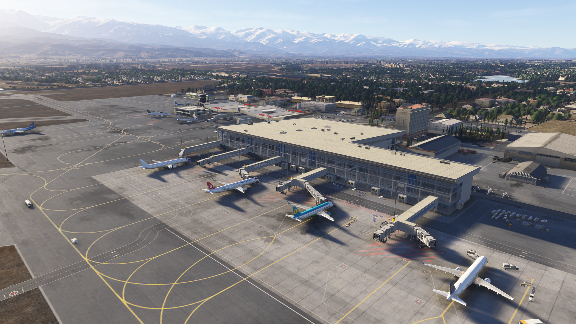 Welcome to Alamty Intl. Airport (UAAA) for Microsoft Flight Simulator!\n\nEnhance your flying experience with our meticulously crafted addon for Almaty International Airport (UAAA), the main aviation hub of Kazakhstan. Located at the foothills of the majestic Tian Shan mountains, Almaty offers a unique blend of urban operations and dramatic natural scenery that makes every flight visually stunning and operationally engaging.