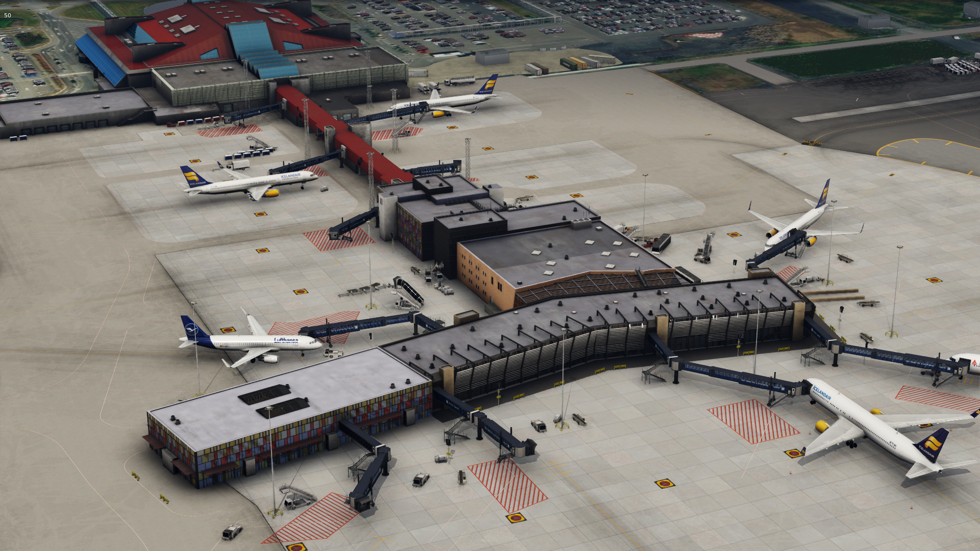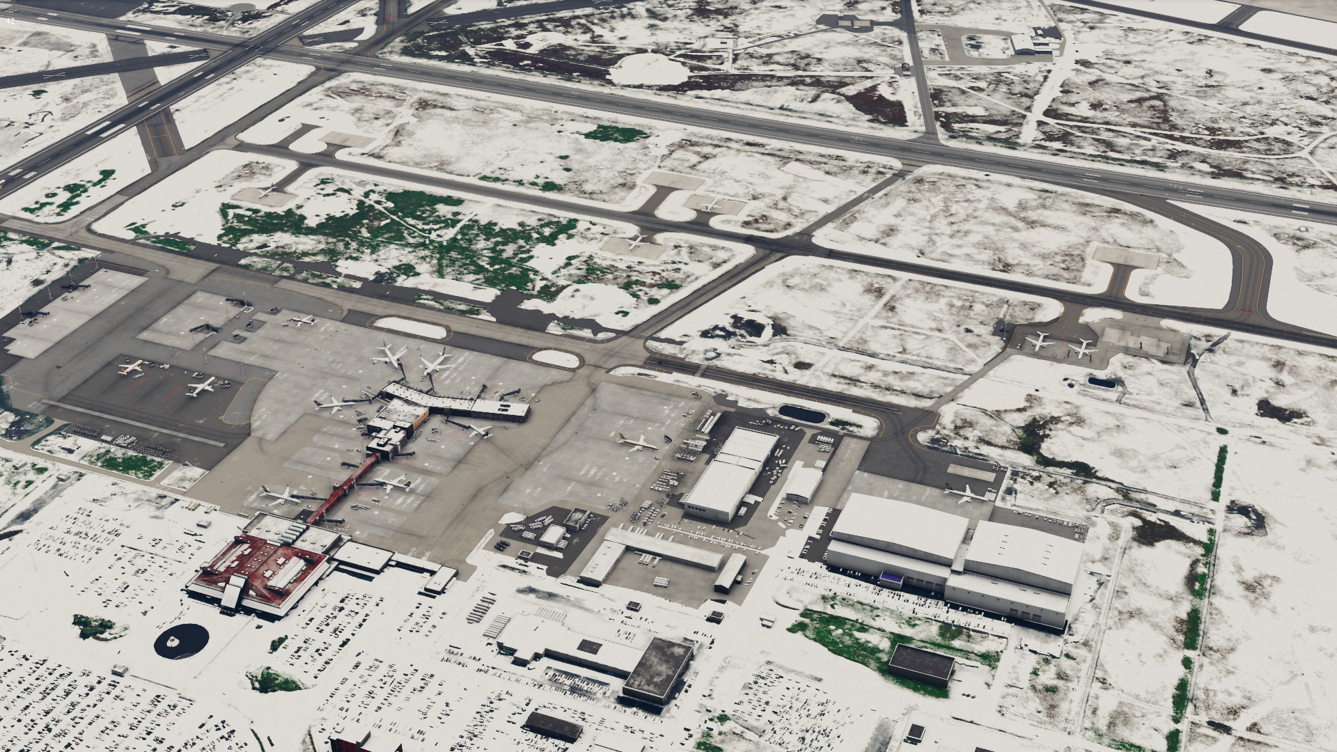 • 4K PBR ground textures ensure realistic asphalt and concrete colors across the airport